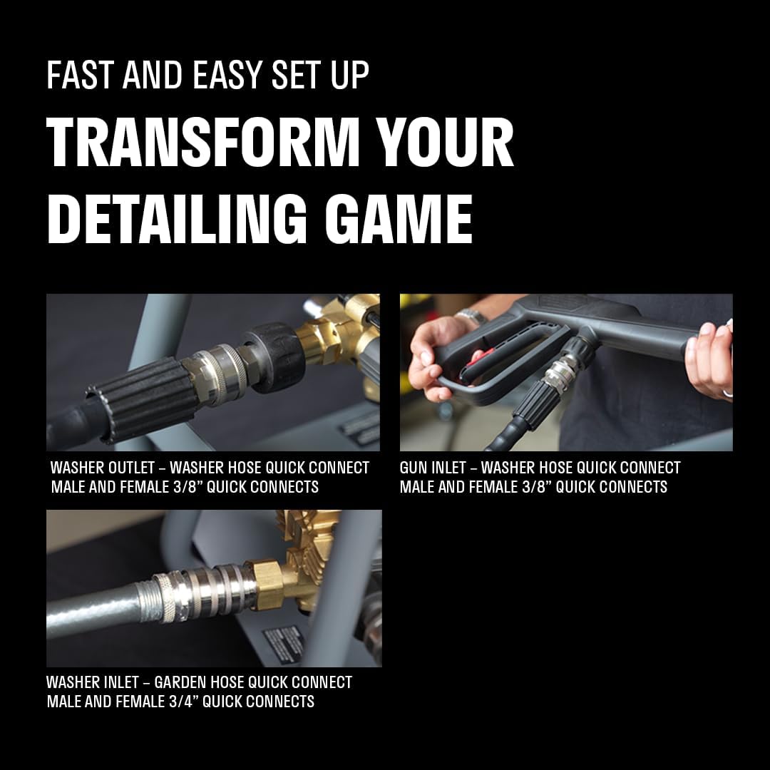 - 【 Budget-Friendly Upgrade for Enhanced Performance】 This pressure washer quick connect kit offers a budget-friendly solution to elevate your pressure washing experience. With fast and secure water hose quick connect fittings, it streamlines setup and teardown, making it an essential addition for those seeking efficient and convenient pressure washer accessories.