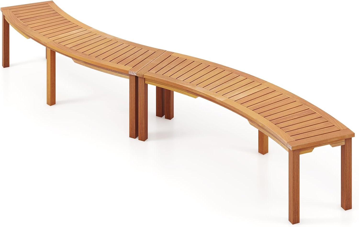 Tangkula Outdoor Curved Bench, Acacia Wood Fire Pit Bench w/Slatted Seat, Patio Backless 2-Person Seating for Porch, Yard, Garden, 800 LBS Max Load, Oil Painted (2, 58")