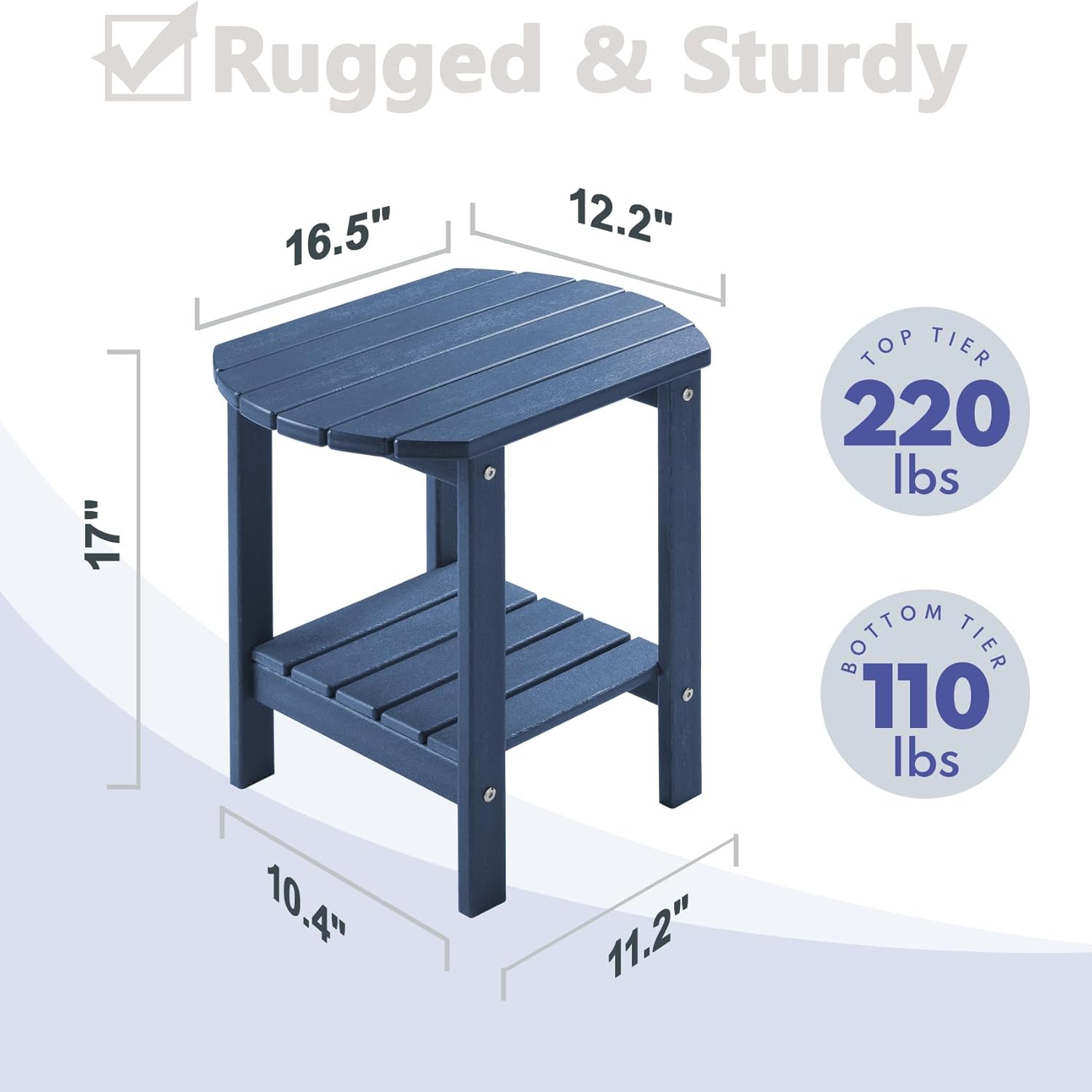 PASAMIC Outdoor Side Table, HDPE Adirondack Oval Side Table with 2-Tier Storage, Weather Resistant Outdoor End Table for Patio, Backyard, Indoor Companion, Beach, Easy Maintenance Table (Navy Blue)
