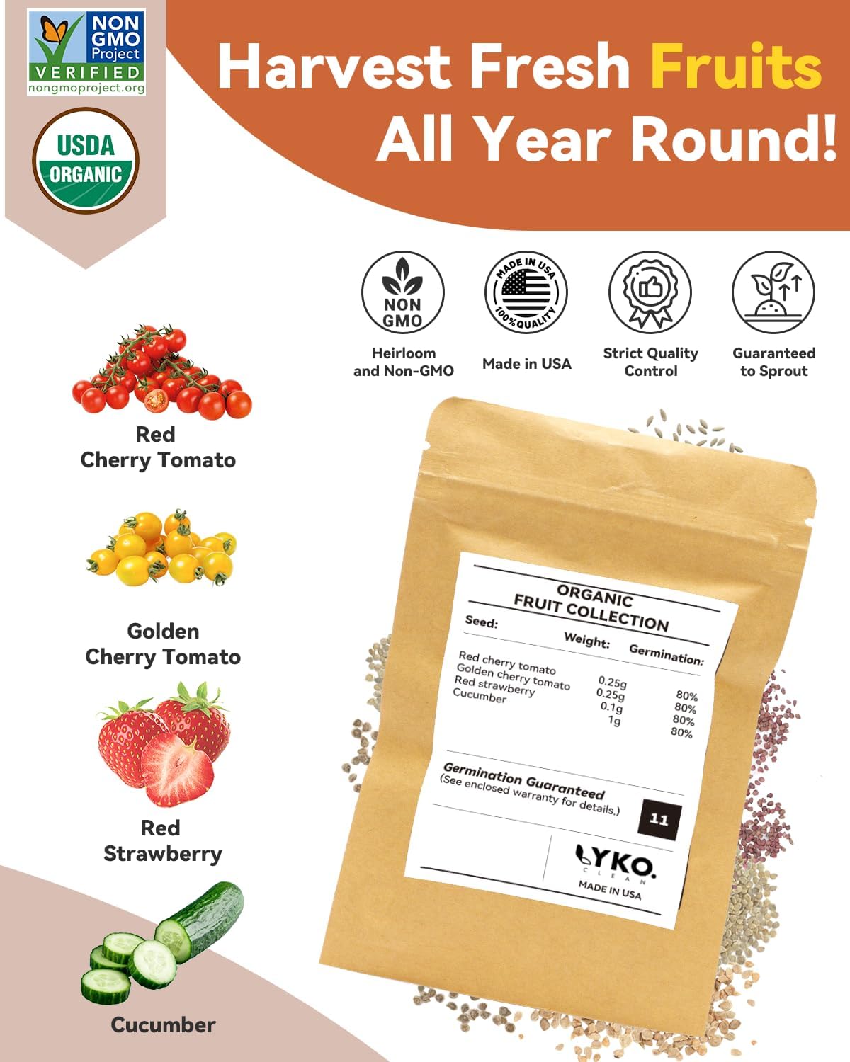 - HEIRLOOM & NON-GMO SEEDS MADE IN THE USA - All our seeds are grown and packaged in America. All seeds are organic, heirloom, and non-GMO. Our high germination seeds allow you to plant all year round, even in winter. Enjoy the fresh harvest of the fruits directly to your recipes