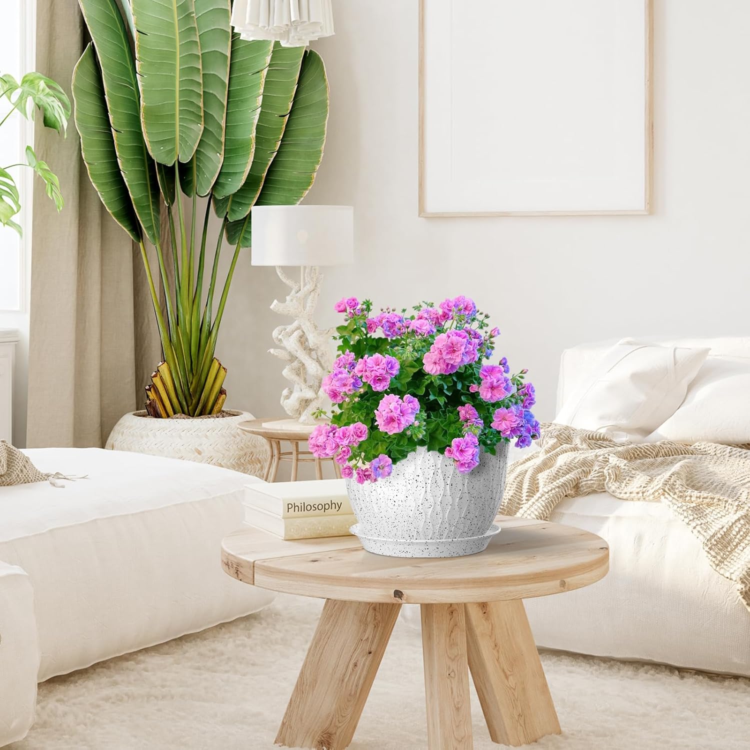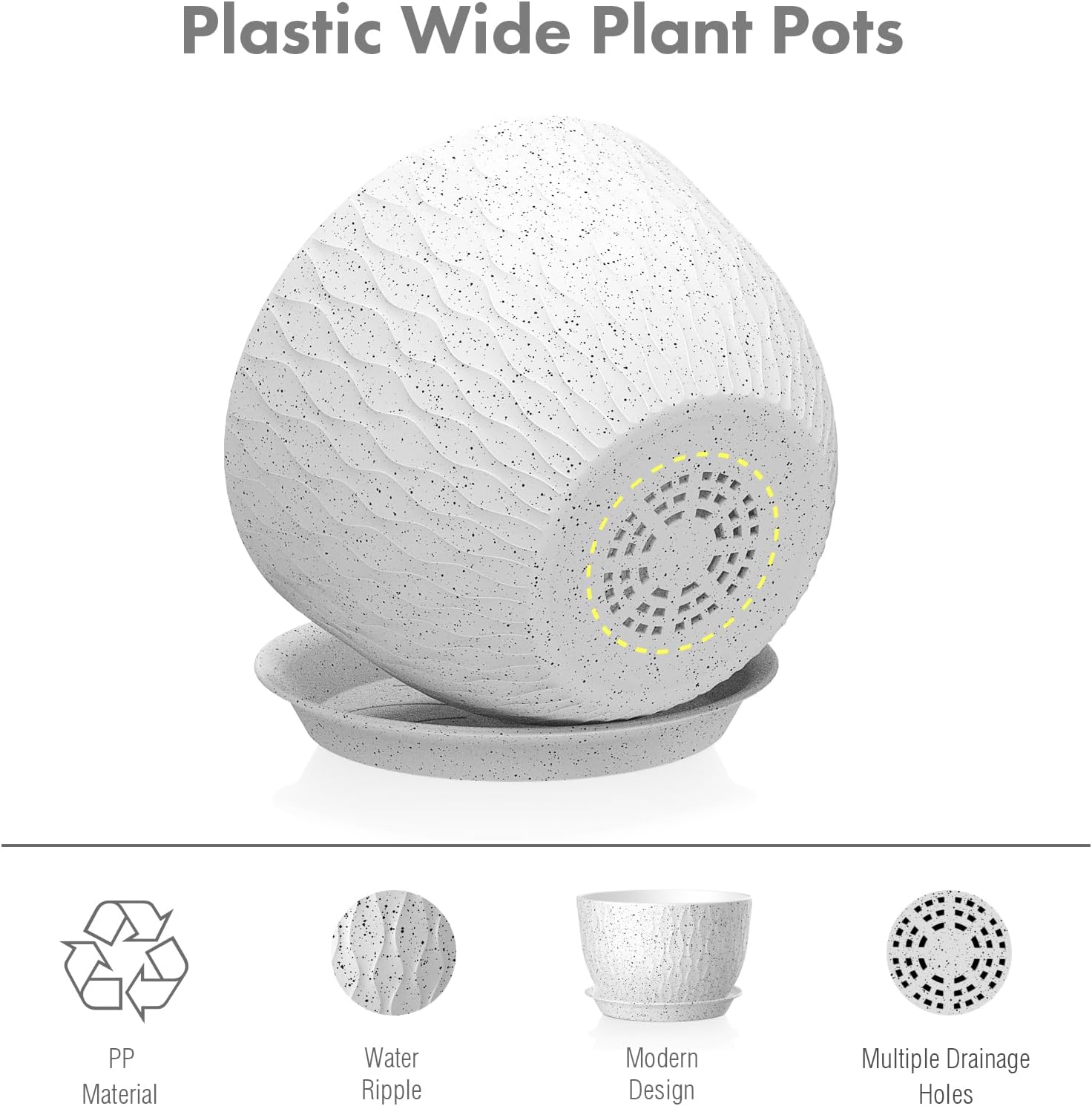 12/10/9 inch Large Flower Pots, 3 Set Big Plant Pots for Outdoor Indoor Plants with Water Ripples, Wide Plastic Planters with Drainage Holes and Saucers for Garden House Plants, Speckled White