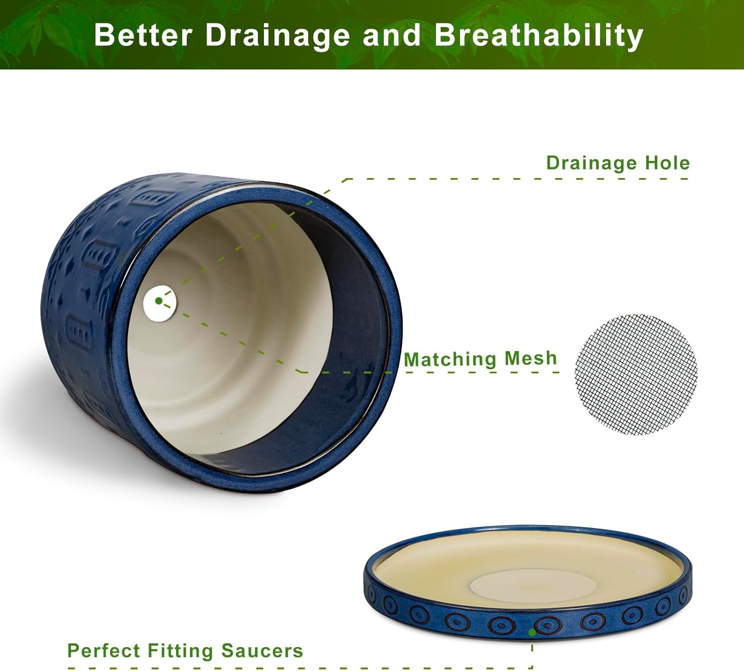 - Optimal Drainage: The plant pots with drainage holes and saucers ensures optimal water flow and air circulation, keeping your plants growth while avoiding excess water from spilling and staining your surfaces
