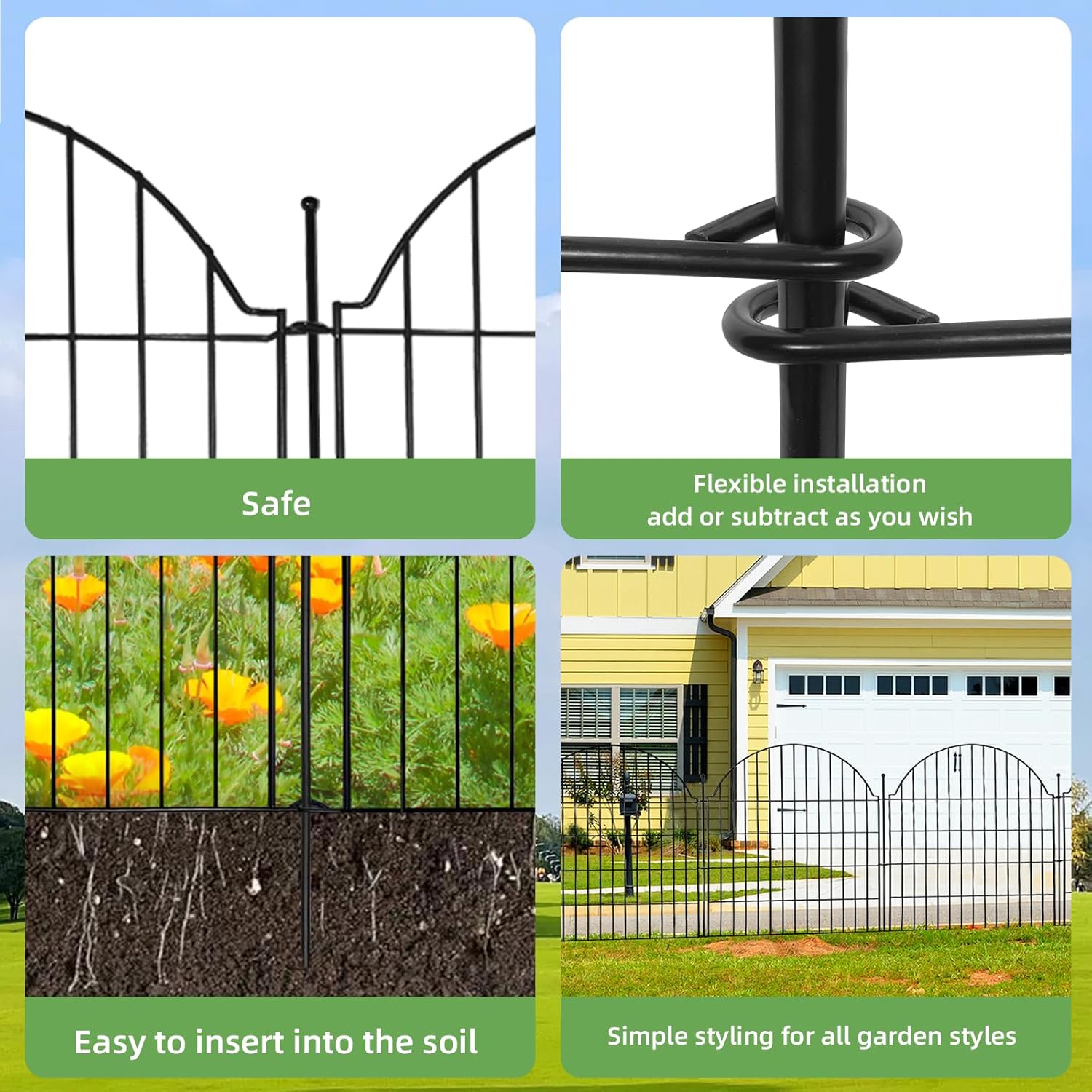 - 【Detailed Dimensions】Blingluck garden fence includes 5 pieces of fence panels measuring 40" H & 29" W, 6 metal stakes that are 47 " H. The Blingluck decorative garden fencing has a total height of 47 inches (7'' metal stakes in soil ), with a 1.8-inch fence gap. Total Length is about 11.8 ft. Easier and more sturdy installation