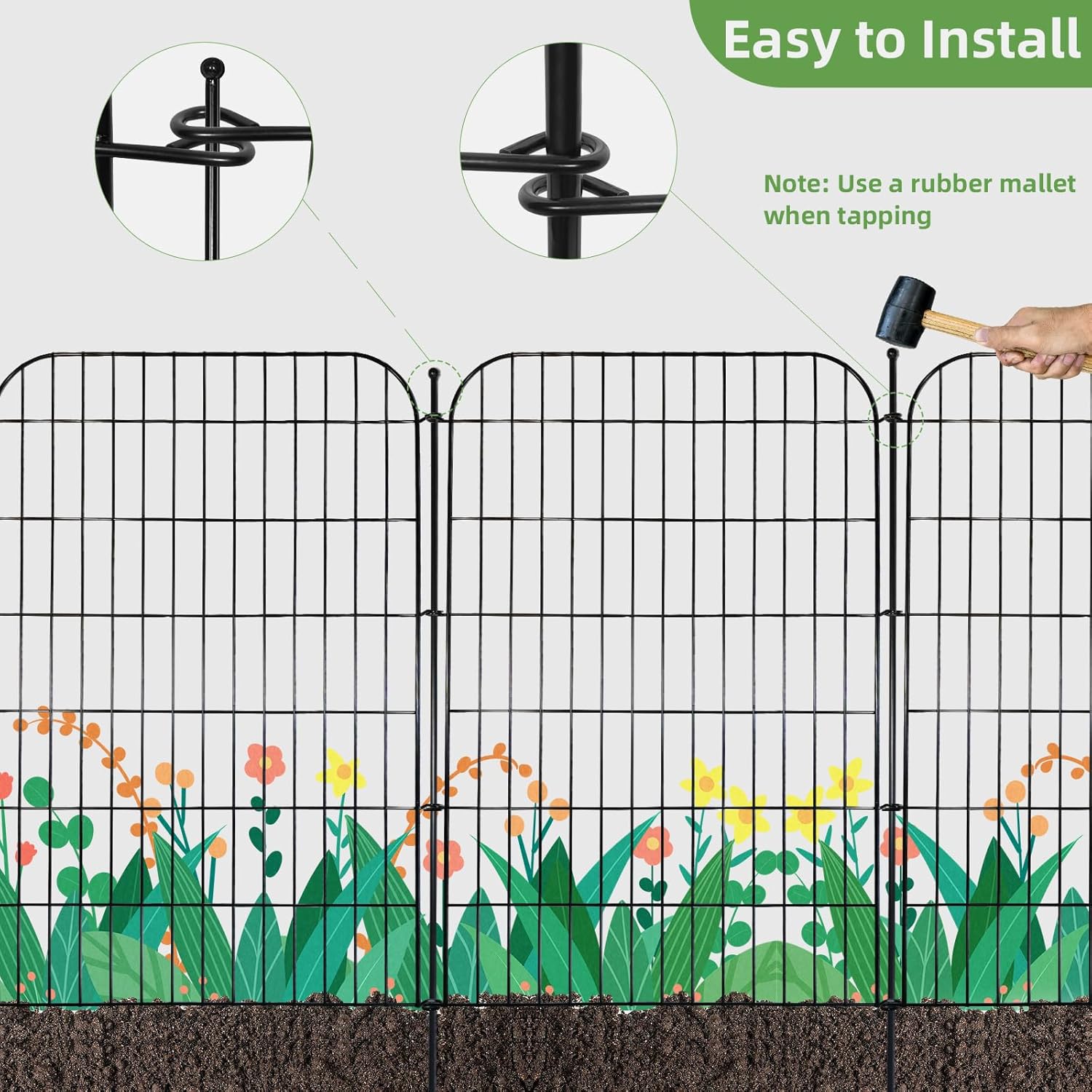 - 【Detailed Dimensions】Transform your garden with the Blingluck tall garden fence! This set includes 10 fence panels (24" H x 24" W), 11 sturdy metal stakes (47.2" H). With a total height of 47.2" (including 7" stakes in the ground), a 1.8" fence gap, and an overall length of 23.6 ft. Keep your garden stylish and secure!