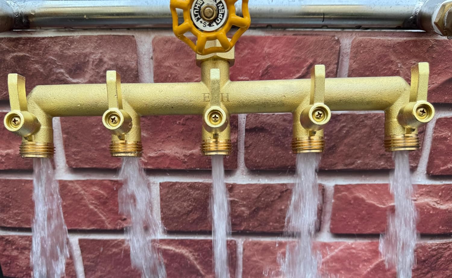 - EFFICIENT WATER FLOW AND CONTROL: each outlet is equipped with individual gold-colored metal handles and shut-off valves, which can precisely regulate water flow and maintain a strong link and seal.