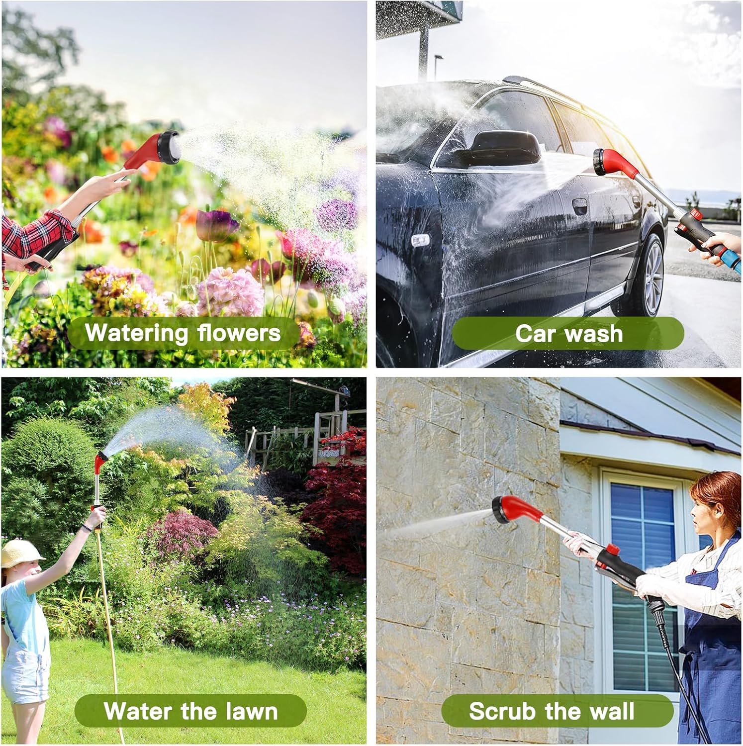 GREEN MOUNT Watering Wand, Heavy Duty Garden Hose Wand with 8 Spray Patterns, 16-Inch Hose Sprayer Nozzle with Flow Control, Ideal for Lawn and Garden Use, Red