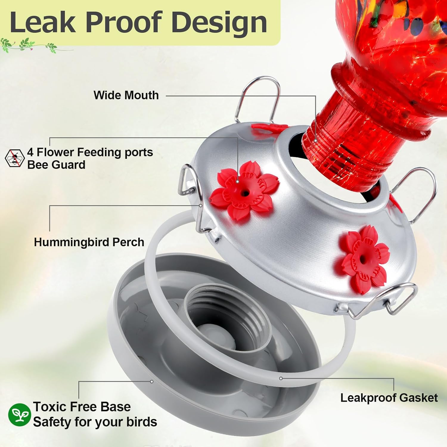 - Attract More Hummingbirds: XAROO hand-blown glass hummingbird feeder has bright and vibrant colors, effortlessly attracting surrounding hummingbirds to your yard. 4 feeding ports provide habitats for multiple hummingbirds