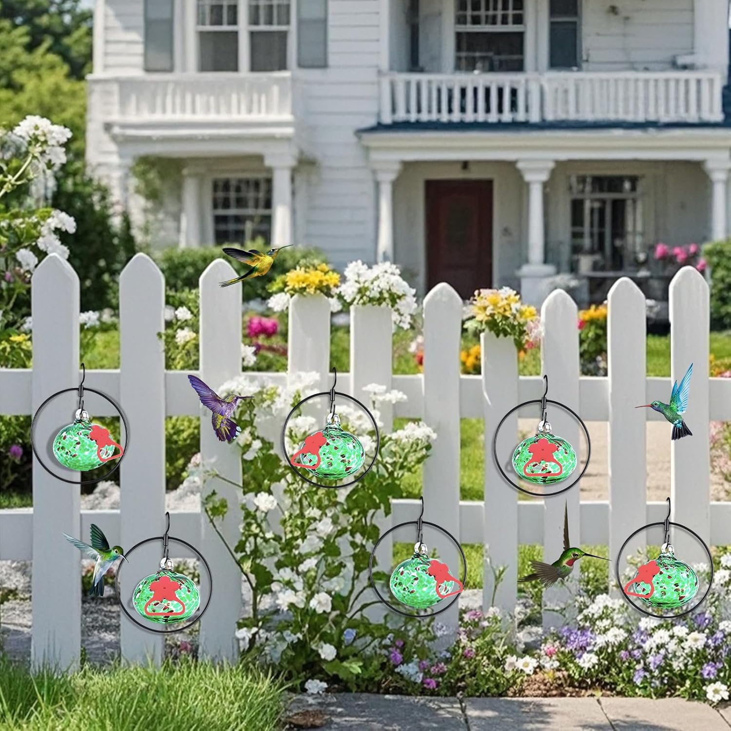 Flexible 6 Pack Hummingbird feeders for Outdoors Hanging Ant and Bee Proof,Detachable Hand Blown Glass Hummingbird Feeder with 6 Adjustable Silicone Perch(Green)