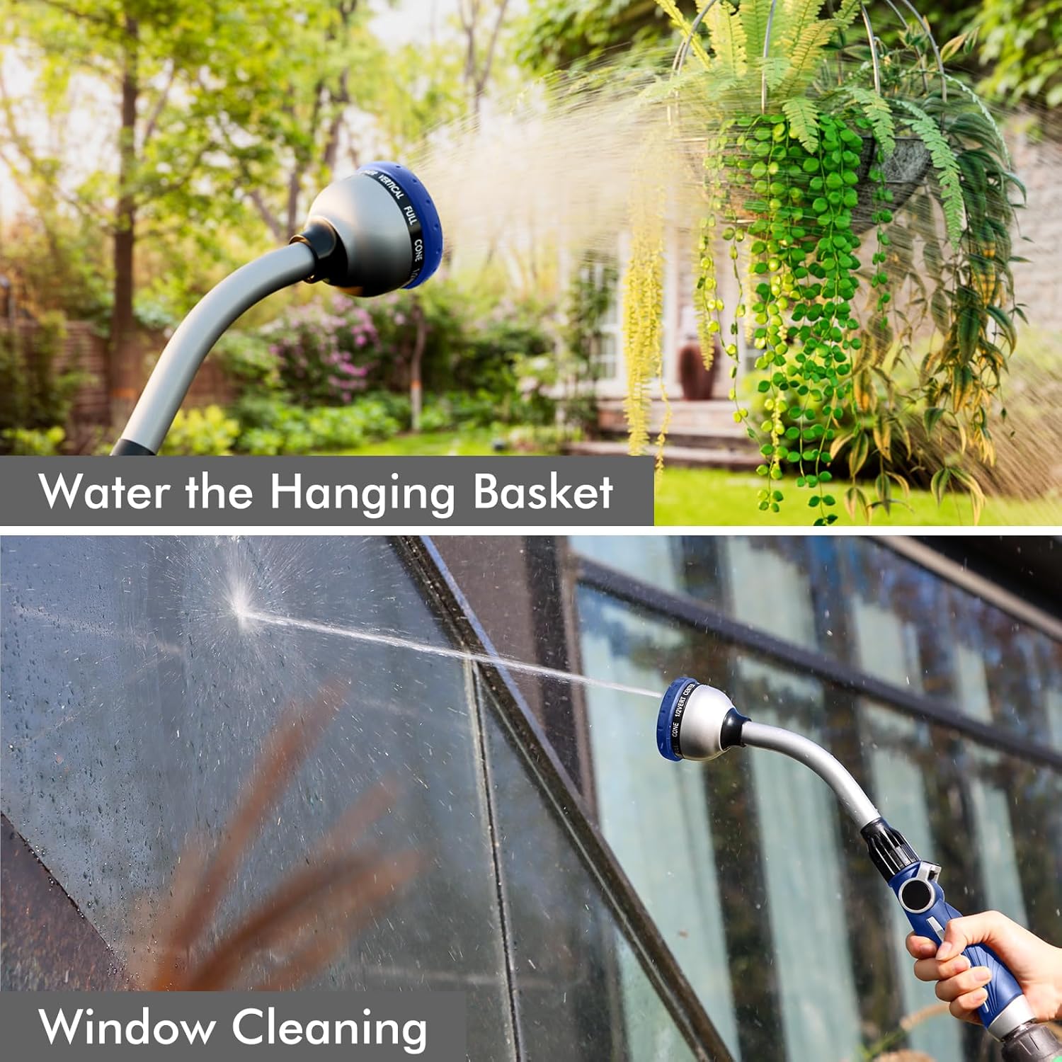 - 【10 Watering Patterns】Rotate the spray head dial to select a water pattern from Shower, Flat, Full, Mist, Jet, Center, Cone, Angle, Vertical, and ½ Vertical. Whether you need the high-pressure jet to clean your window, the useful angle to wash your car, the gentle shower to clean your shrubs, or the soft mist to water your hanging baskets, the 10 patterns have you all covered.