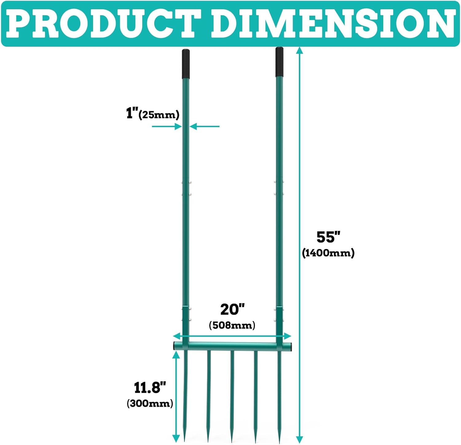 - Premium Material and Reinforced Design: Made from all-steel materials with a thickened structure, this hand tiller broadfork features an additional green coating that effectively prevents rust and corrosion, ensuring superior durability compared to wooden tools which are prone to rotting and breaking. Its sturdy design handles demanding tasks and challenging soil conditions. Featuring five rounded tines, it minimizes soil adhesion for extended use and is perfect for all your gardening needs