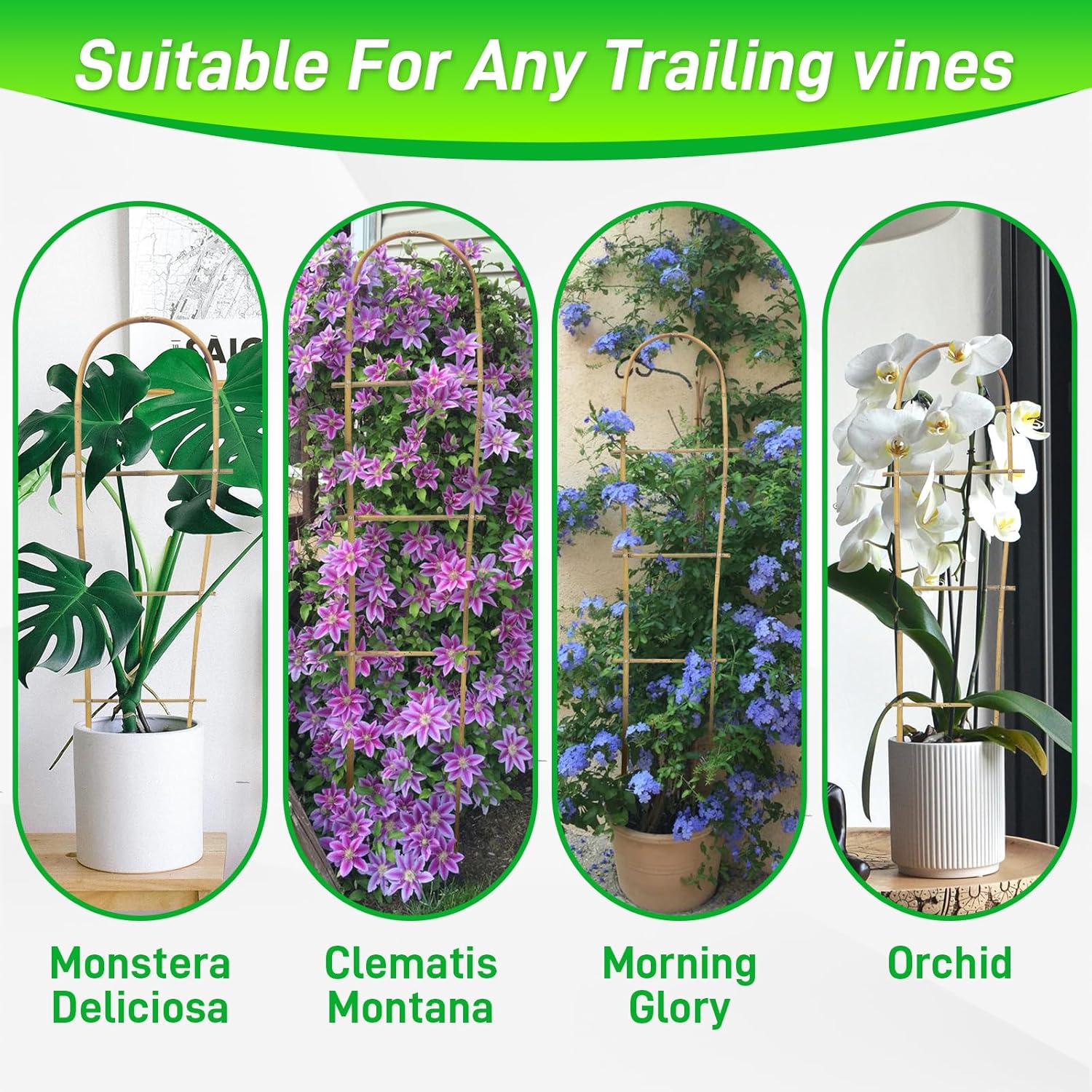 - 【Natural Bamboo】Each bamboo stalk is completely natural, carefully selected, and treated through smoking. Assembled manually, its U-shape design provides ample space for the growth of climbing plants.