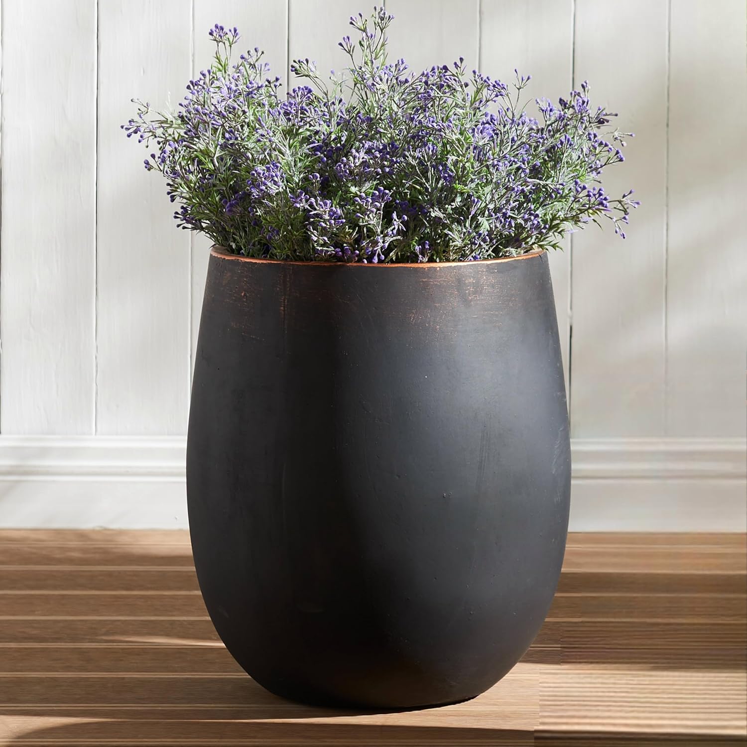 13.3" Dia x 15.3" H Concrete Planter, Outdoor Planter, Black with Gold Rim, Flower Pot with Drainage Hole and Silicone Plug, Plant Container for Garden, Patio, Home, Office, 1 Pack