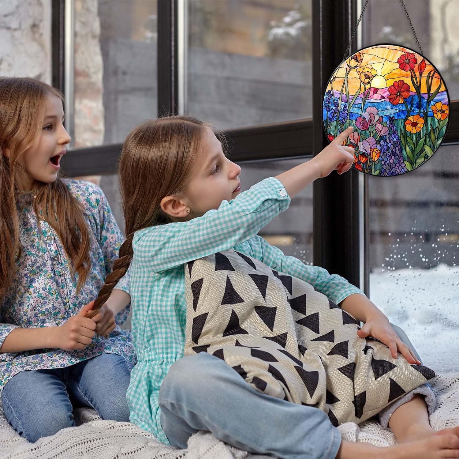 Wildflowers Sun Catcher Stained Glass Window Hanging Plant Lover Gifts for Women Wildflowers Wall Decor Handmade Sun Catcher Decoration for Window Garden Home Christmas & Birthday Gifts