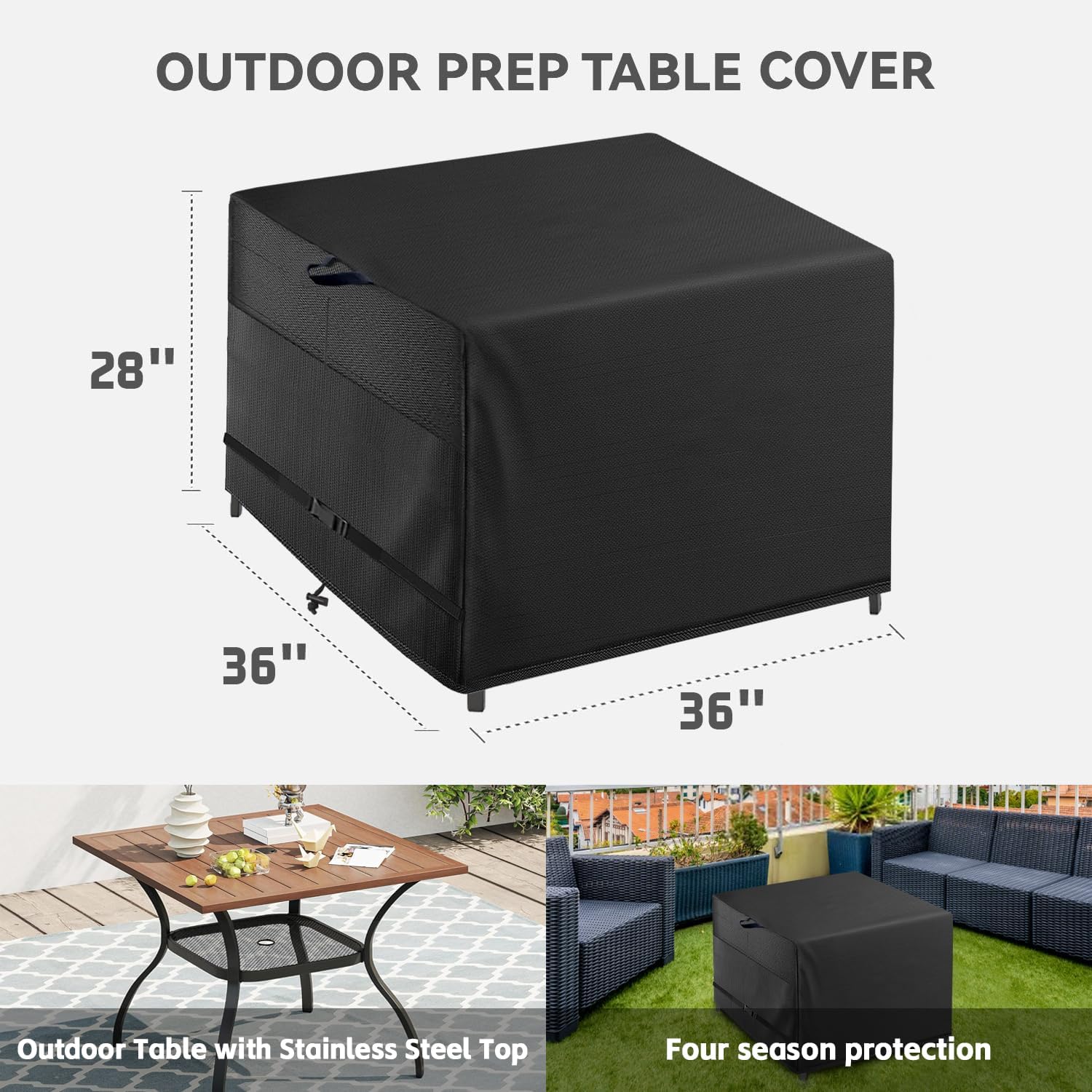 Outdoor Patio Square Table Cover 36 inch Black Heavy Duty Waterproof Cover for Square Slatted Tabletop