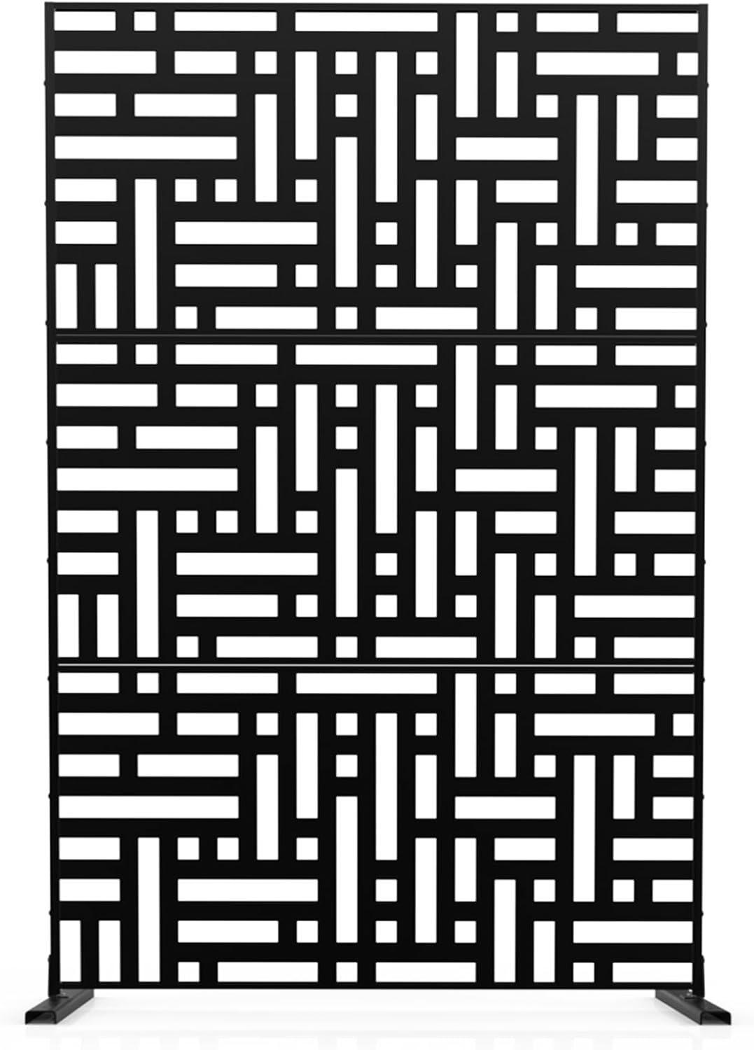 Metal Privacy Screen 72" H x 47.2" Decorative Outdoor Privacy Screen Privacy Panel with Stand for Balcony Deck Patio Lawn Garden, Privacy Fence (Black-Street)