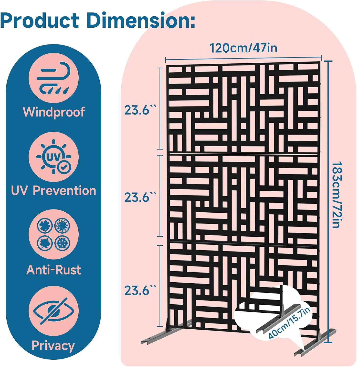 - Durable Construction: Built with thickened steel and a powder-coated finish, our metal privacy screen is designed to resist sun damage and water, ensuring longevity and durability. Ideal for withstanding varied weather conditions, from intense sun to heavy rain, without rusting or fading.