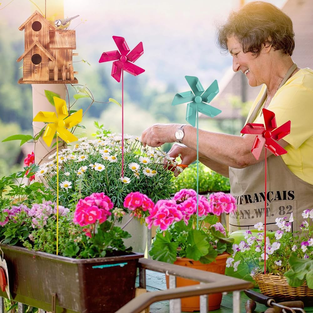 - Classic Pinwheels Design: The simplicity of the design ensures it complements any garden or yard decor. The Pinwheels features a multi-colored design that will brighten any outdoor space. Whether you're looking to enhance your garden decor for outside or add a playful touch to your patio, these outdoor wind spinners are the perfect choice.