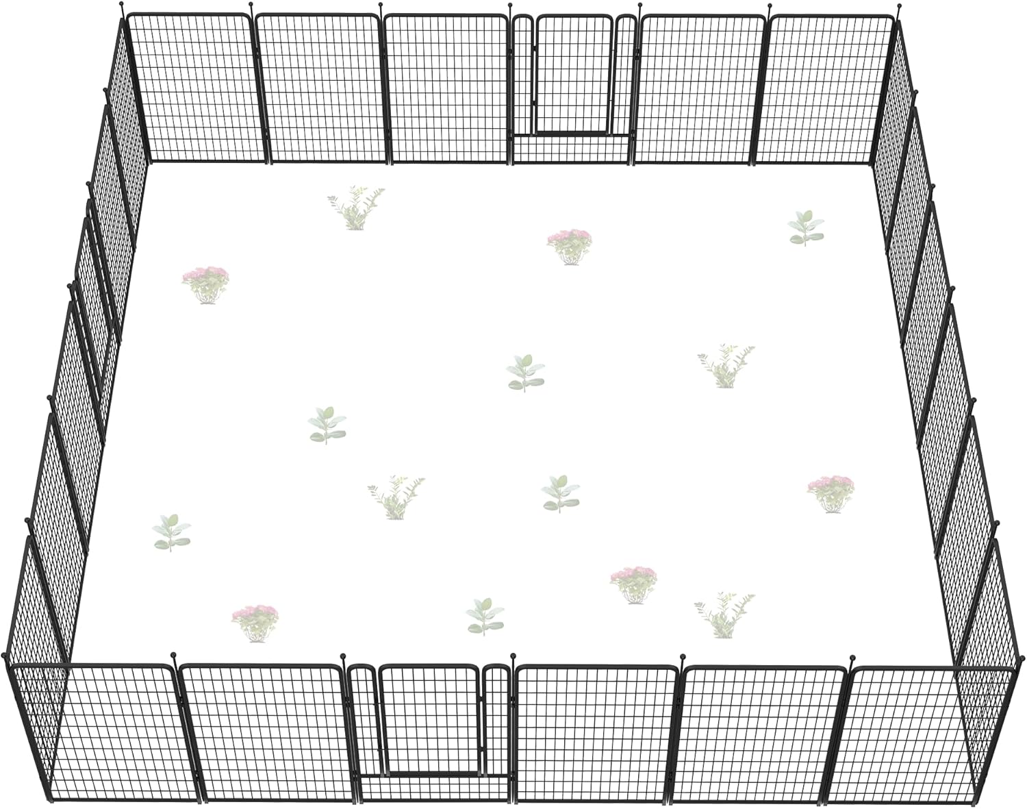 FXW Garden Fence Outdoor for The Yard – 50in(H) x 62.6ft(L) Heavy Duty Metal Animal Barrier for Dog and Rabbit, Decorative Dog Fence, 24 Panels, Black