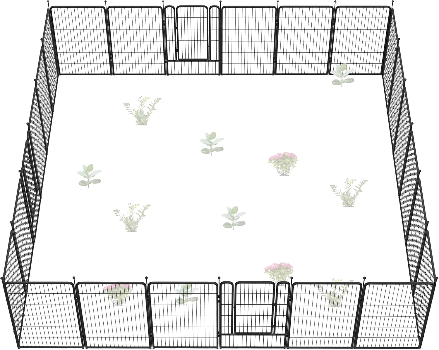 FXW Garden Fence Outdoor for The Yard – 45in(H) x 54.7ft(L) Heavy Duty Metal Animal Barrier for Dog and Rabbit, Decorative Dog Fence, 24 Panels, Black