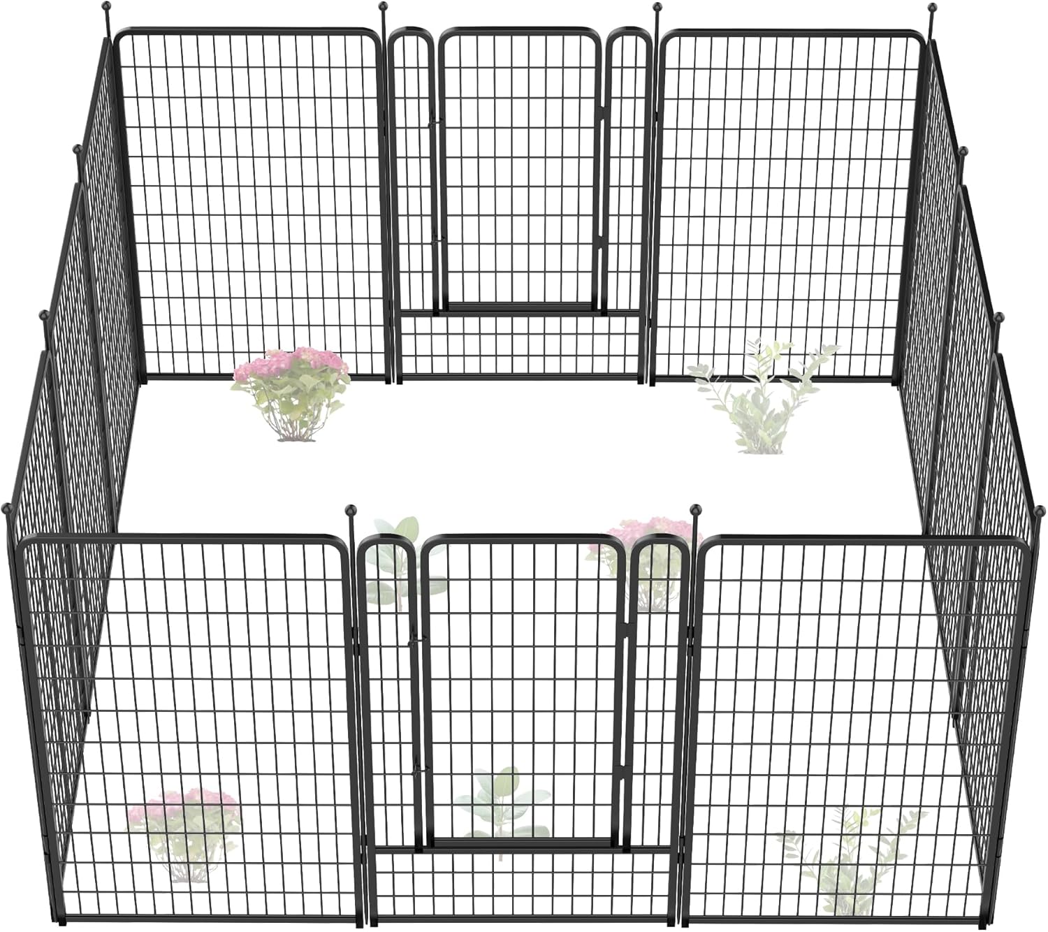 FXW Garden Fence Outdoor for The Yard – 50in(H) x 31.3ft(L) Heavy Duty Metal Animal Barrier for Dog and Rabbit, Decorative Dog Fence, 12 Panels, Black