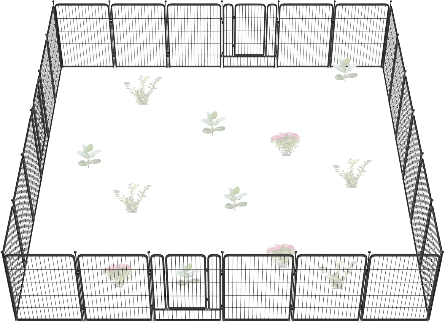 FXW Garden Fence Outdoor for The Yard – 40in(H) x 54.7ft(L) Heavy Duty Metal Animal Barrier for Dog and Rabbit, Decorative Dog Fence, 24 Panels, Black