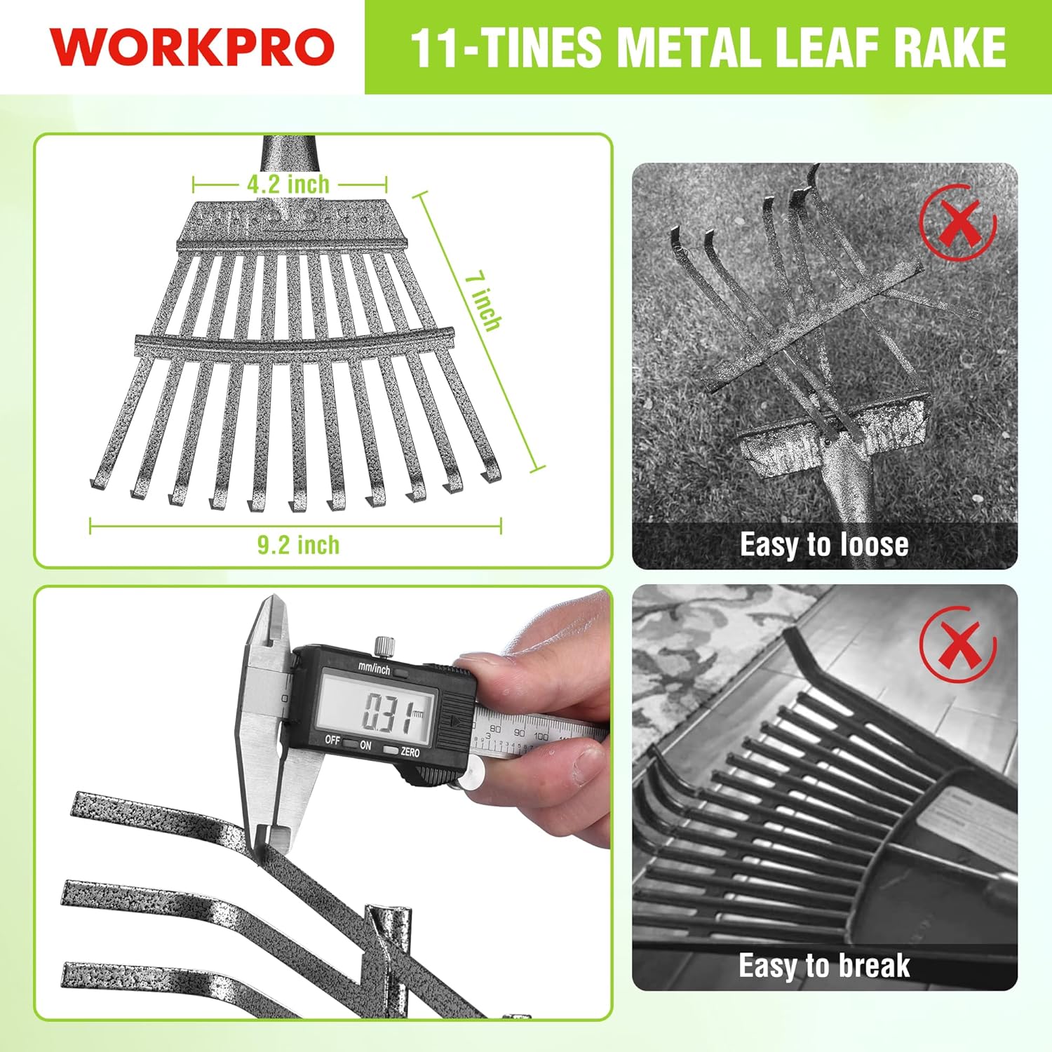 - Heavy Duty & Rust-Resistant Metal: Made of high-strength steel with an anti-rust and anti-corrosion coating, this heavy duty metal rake is built to last. Unlike wooden rakes, it won’t bend or crack under pressure—ideal for raking leaves, grass, mulch, pine cones, and debris