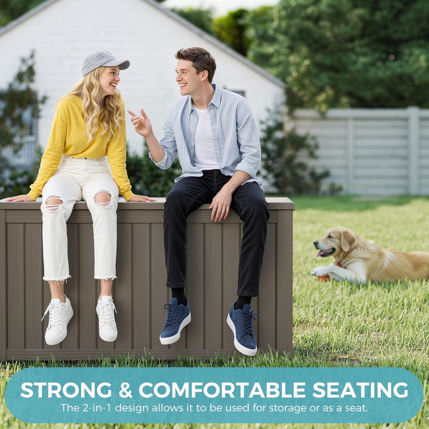 NUNU LAB 150 Gallon Outdoor Storage Box,Resin Large Sturdy Deck Box, Backyard Outside Storage Box Waterproof with Double Wall Panels,Package Delivery,Garden Outdoor Hose Bin