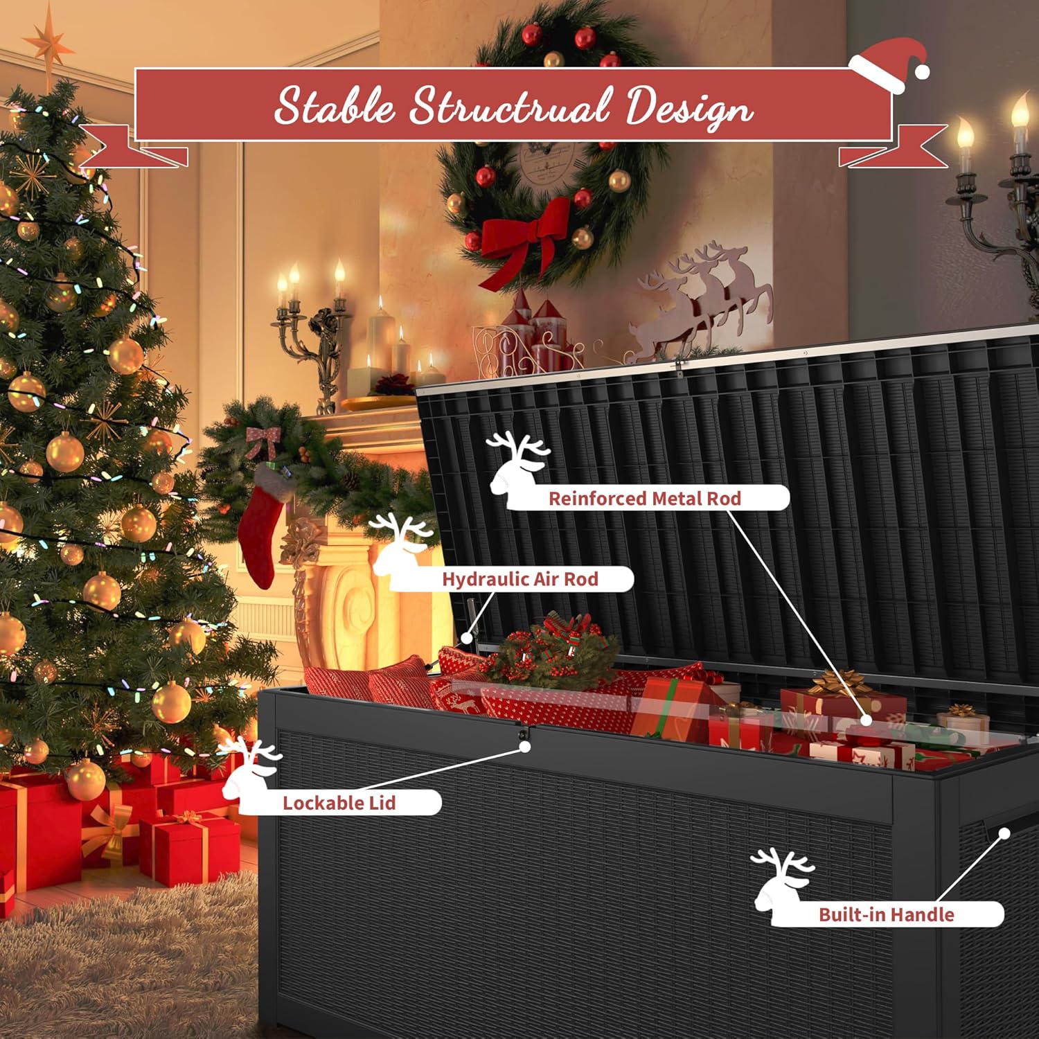 NUNU LAB 260 Gallon Outdoor Storage Box,Resin Large Sturdy Deck Box, Backyard Outside Storage Box Waterproof with Double Wall Panels,Package Delivery Garden Outdoor Hose Bin