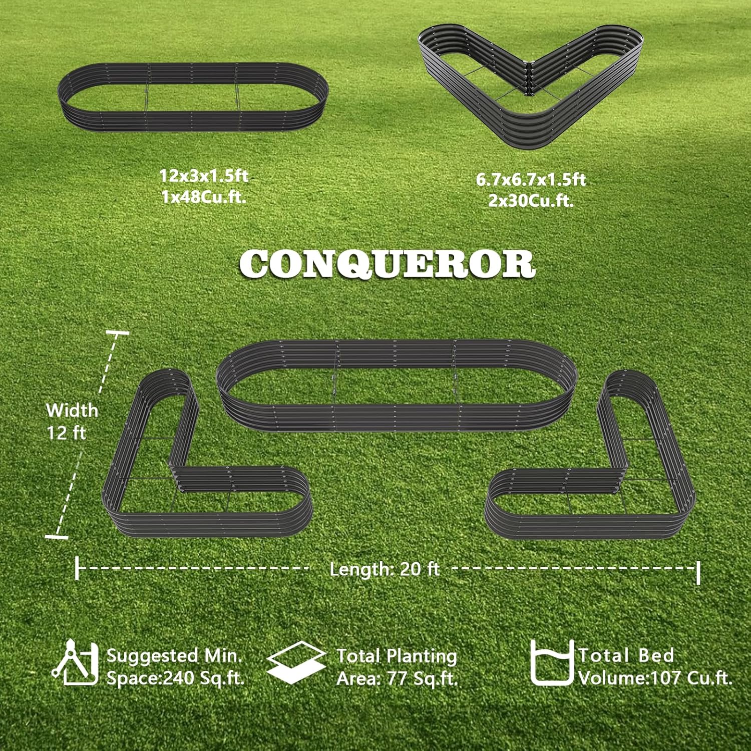 - 💎 Longer Lifespan: Made of 22-gauge 0.8mm thickness corrugated galvanized steel with multi-layer eco-friendly powder coatings. The heavy-duty planter box is strong enough to hold soil for decades.