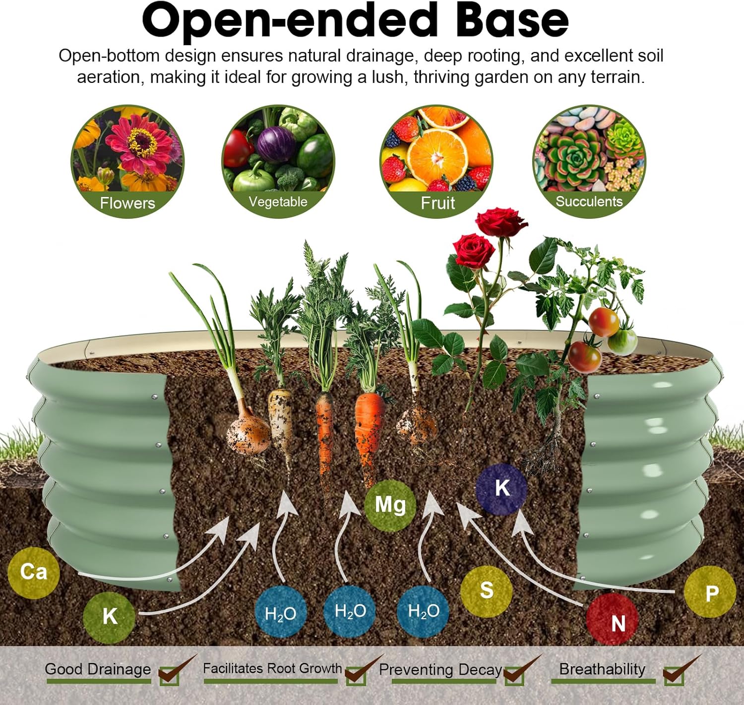 - 【Safety-Friendly】Our outdoor metal planter box feature an oval design with smooth edges to effectively avoid the risk of cuts, providing you with a safe gardening experience. Whether you're planting, watering, or performing daily maintenance, you can operate with peace of mind. Even if your children or pets are playing around the metal planter box, there's no need to worry.