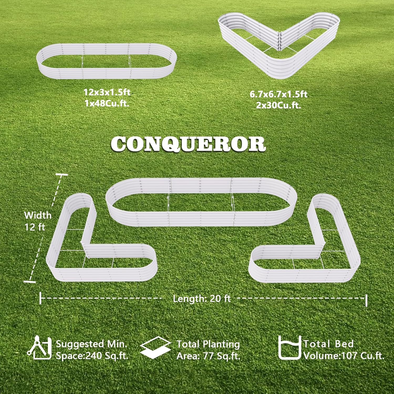 A ANLEOLIFE 3-Pack 12X3X1.5ft & 81x81x18 in Deep Root Galvanized Raised Garden Beds Outdoor for Planting Vegetables Flowers Herb, Antique White