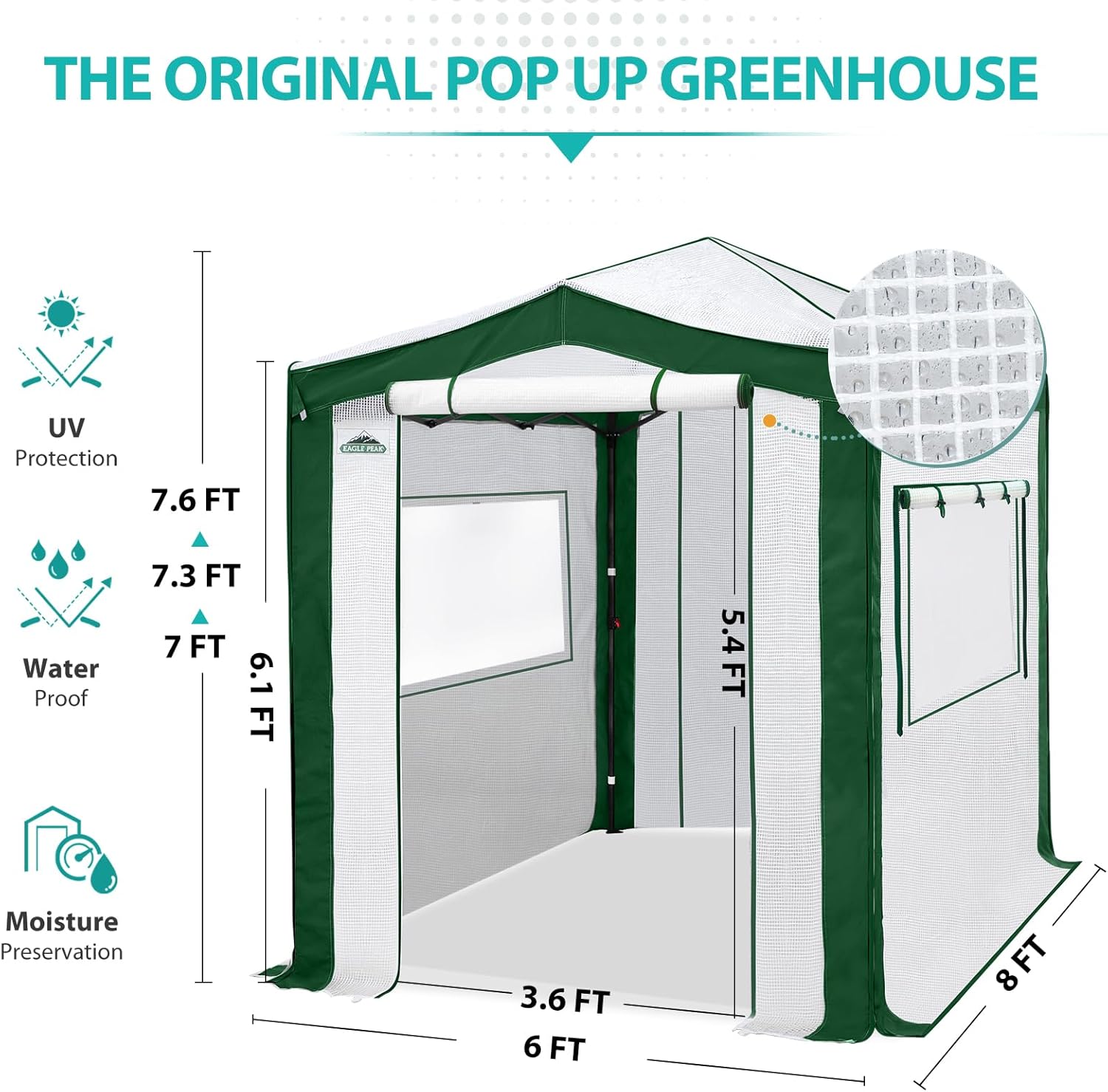 EAGLE PEAK 8x6 Portable Walk in Greenhouse with Polyester Reinforced Corners, Instant Pop Up Indoor Outdoor Gardening Green House, Roll Up Zipper Entry Doors and Mesh Windows, Green/White