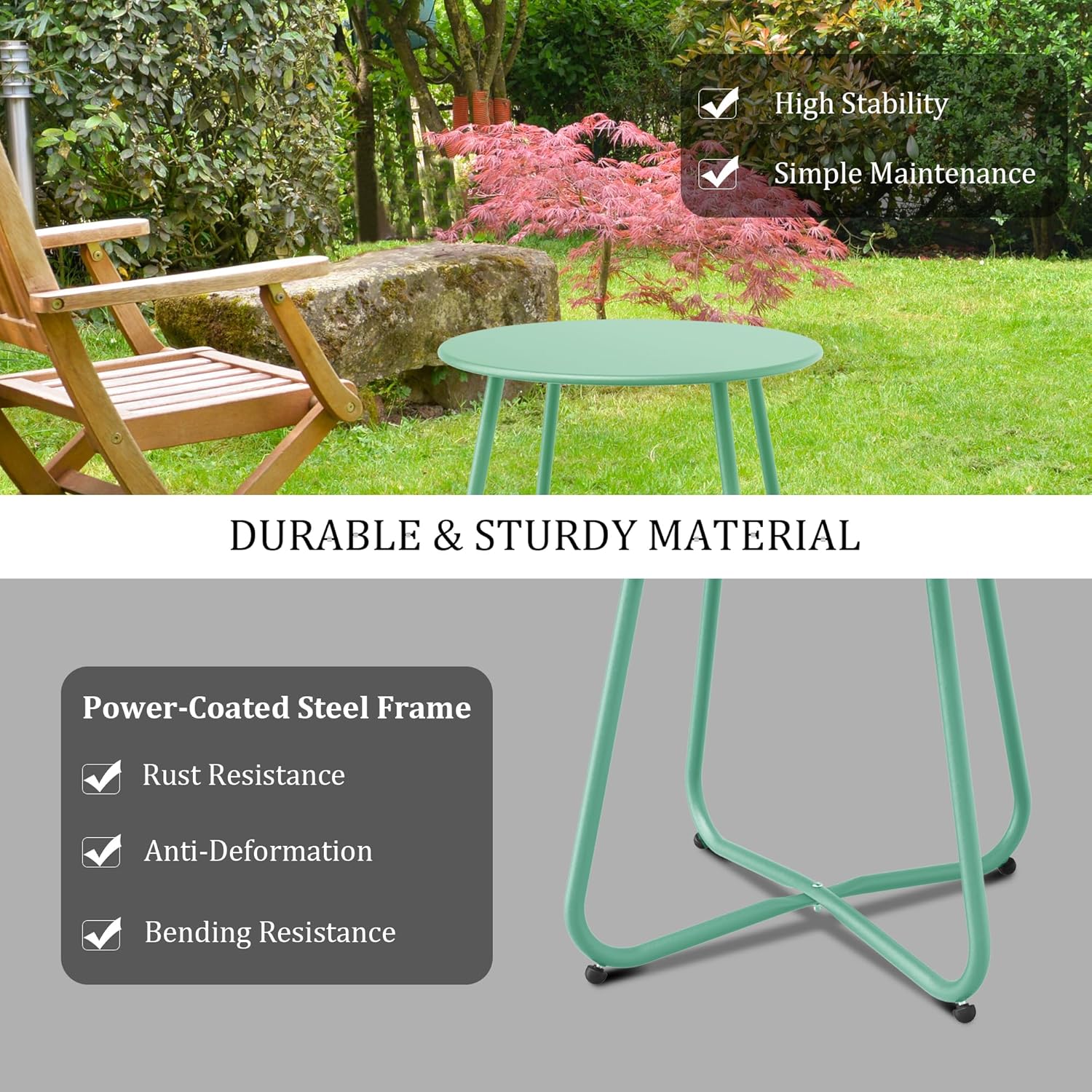 Patio Side Table Waterproof Round Metal Steel Weather Resistant Portable Outdoor and Indoor End Table for Garden Balcony Yard, Bean Green