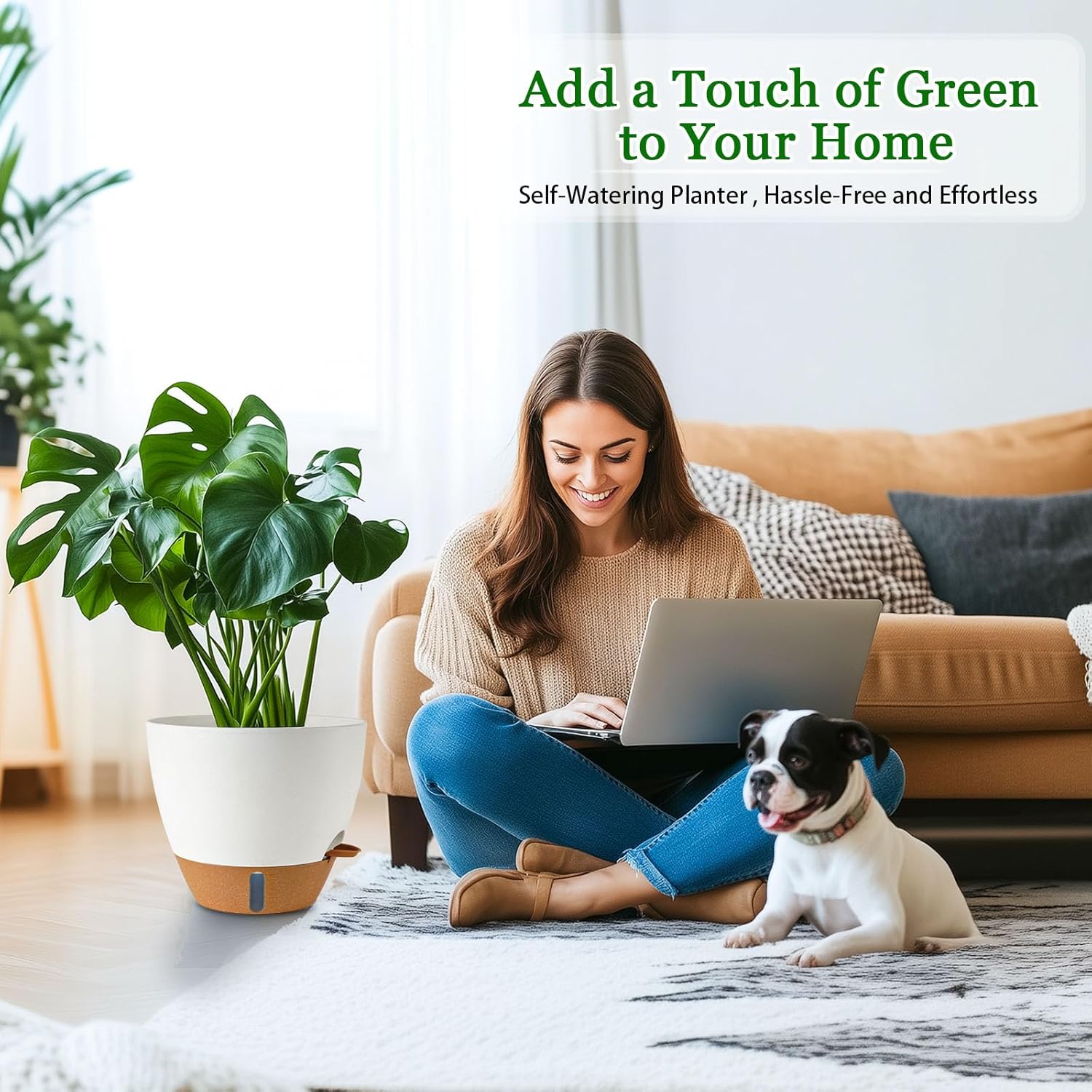 - 🌿 【Self-Watering Feature】The Fielda 10 Inch Plastic Planter comes with a built-in self-watering system that uses absorbent cotton wicks to draw water from the bottom tray into the planter. This ensures your plants stay hydrated with less effort, saving you from frequent watering. Whether you're a busy gardening enthusiast or away for long periods, you can easily maintain your plants' moisture balance, ensuring they get the right amount of water and nutrients.