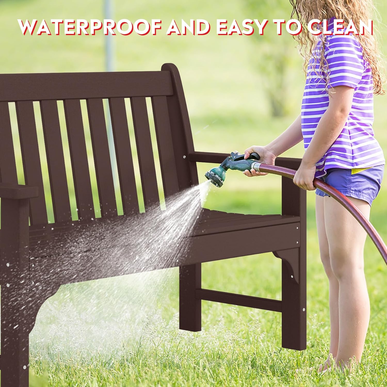Garden Bench, Farmhouse Park Front Porch for Entryway Bench Outdoor Seating Low Bench Patio Bench Outside/Indoor, Dark Brown