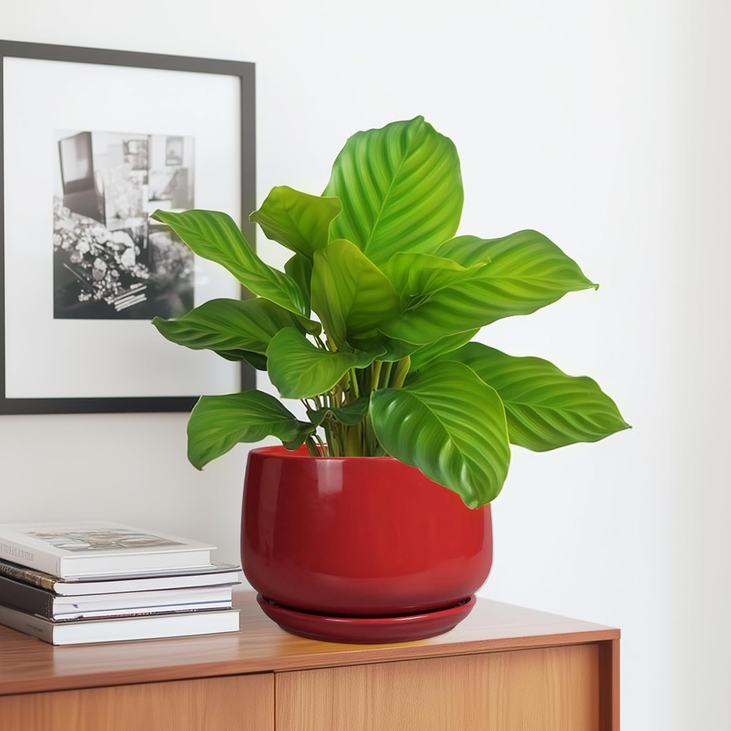 G EPGardening Ceramic Planter 7 Inch - Flower Pots for Indoor Plants, Round Planter with Drainage and Ceramic Tray, Modern Plant Pot, Bathroom Decor, Teacher Gifts, Red
