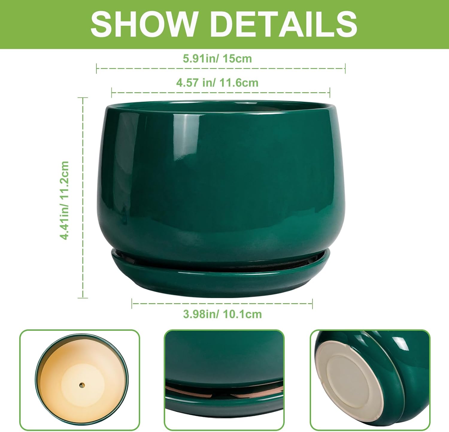 - Durable and Premium Ceramic Plant Pots: This ceramic planter is made of premium ceramics, ceramic with a smooth glaze, beautiful appearance, and durability. This round planter is not easily deformed or damaged(NOT INCLUDE PLANT)