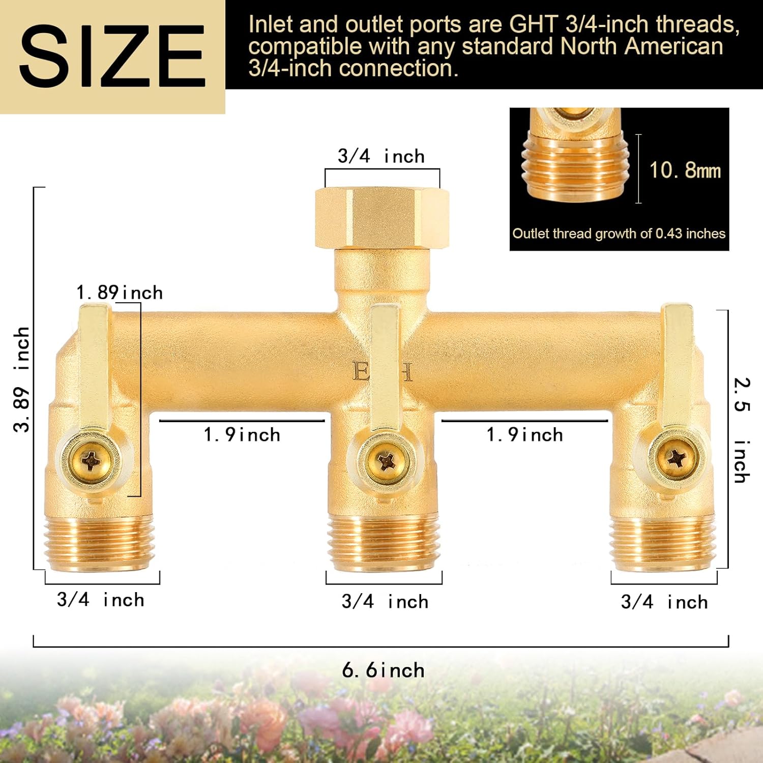 - Large Diverter: This diverter has been fully designed and upgraded to increase water flow, the tee outlet GHT 3/4 inch male threads have grown to 0.43inch and the height has increased by 3.89inch.