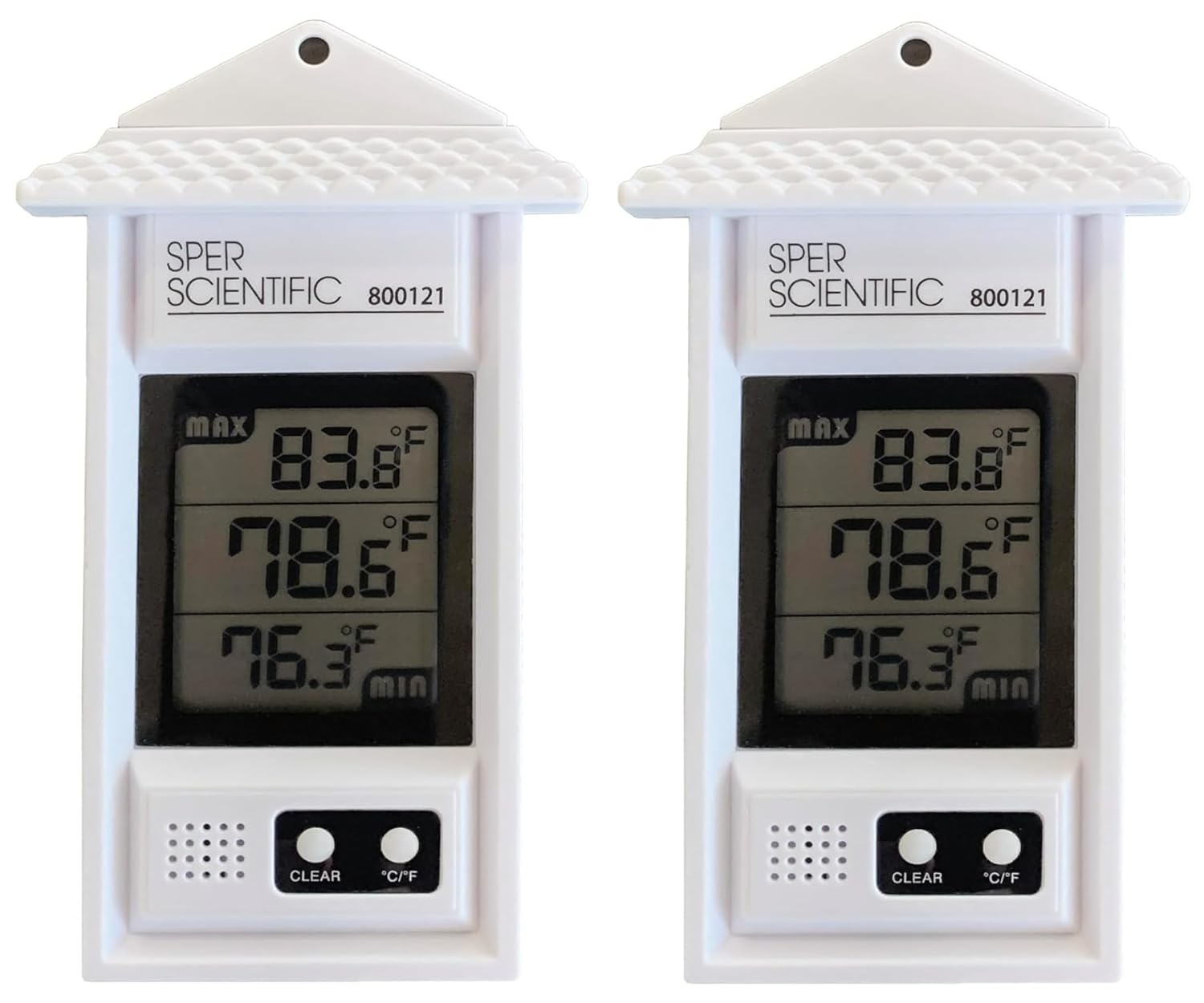 Sper Scientific Compact Digital Min/Max Thermometer 800121 - Wide Range Temperature Logger with Clear LCD Display - Ideal for Laboratories, Food Storage, HVAC & Greenhouses - 2 pc