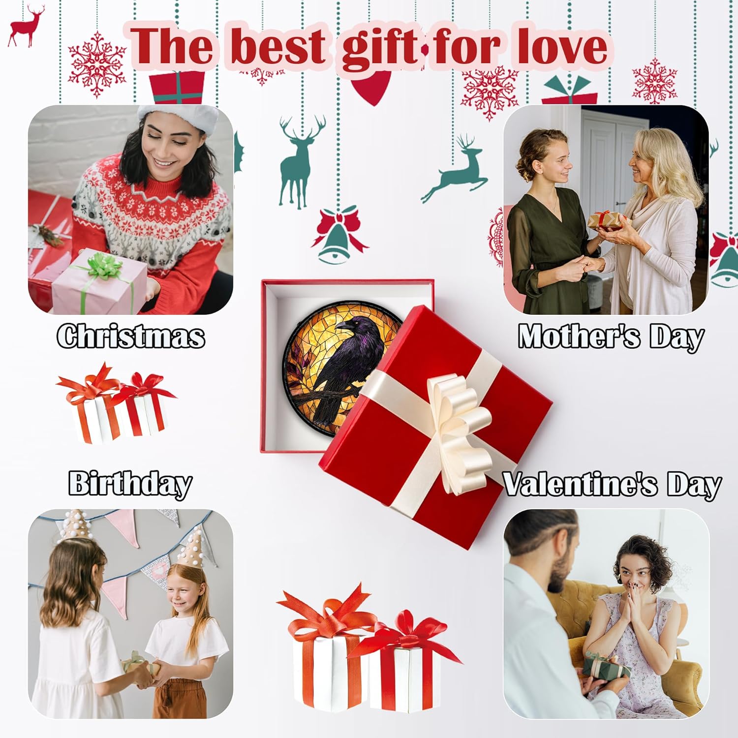 Stained Glass Window Hanging - Crow on a Branch Suncatcher Ready to Hang Window Doors Home Decoration and Christmas, Mother's Day Birthday Gifts for Women, Men, and Mom 7.8x7.8 in