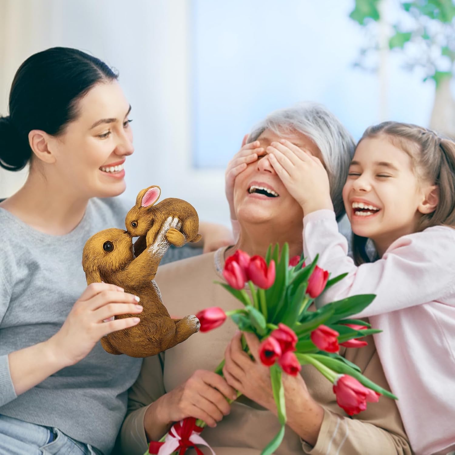 - Charming Mother and Baby Bunny Figurine: This heartwarming resin figurine features a loving mother bunny gently holding her baby bunny, making it a perfect decoration for celebrating Easter, Mother's Day, or springtime.
