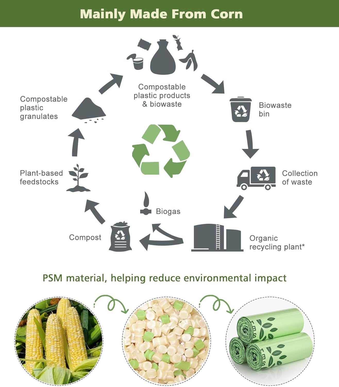 - Made from plants, not plastic: These 3 gallon compostable bags are made from plant-based materials, such as corn starch, offering a sustainable alternative to traditional plastic bags. These 3 gallon compost bags meet ASTM series composting standards and are designed for composting in industrial facilities, reducing waste and contributing to a cleaner, greener planet