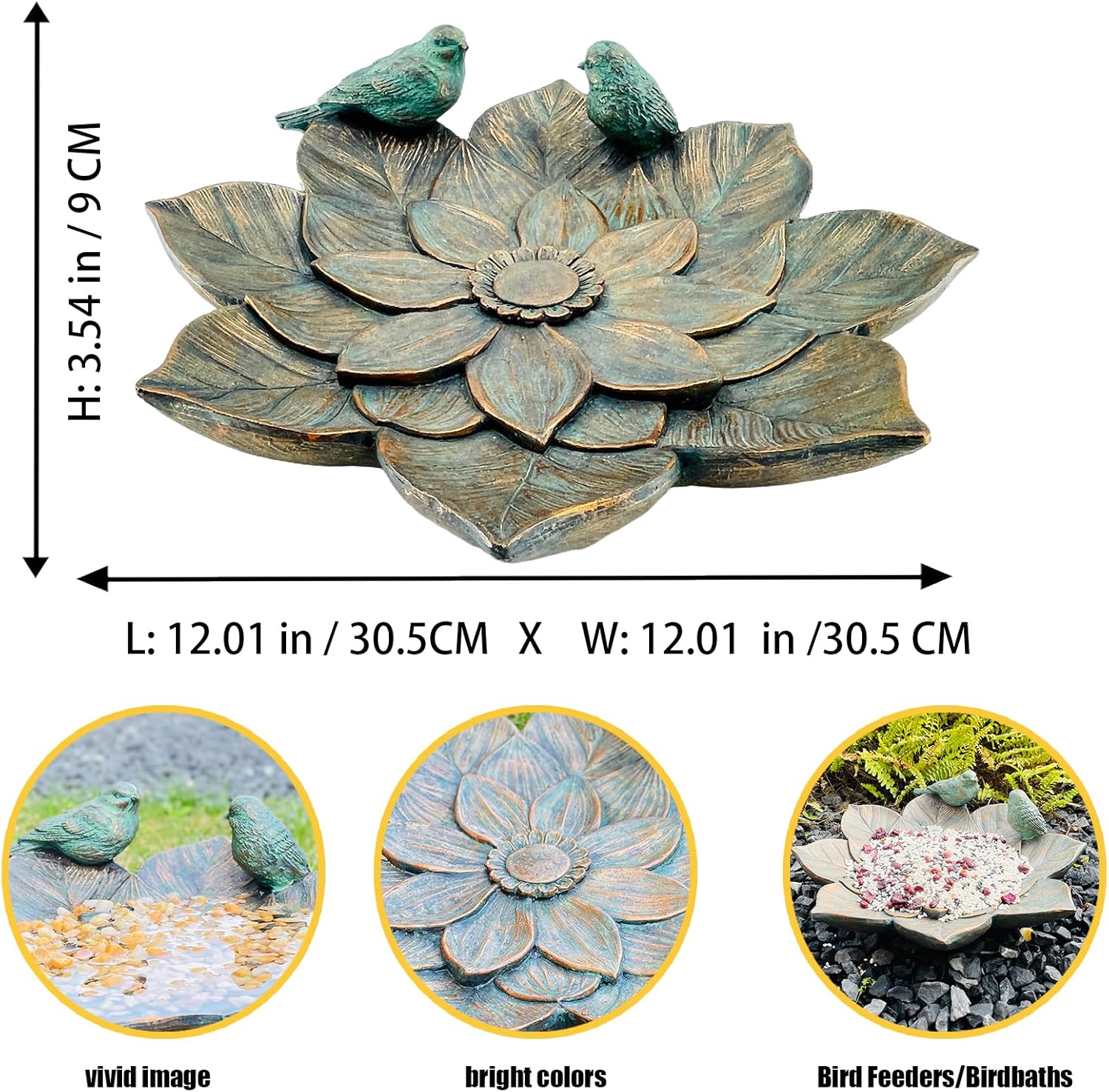 - DURABLE RESIN METARIAL: Outdoor bird bath is made of durable material and covered with resin coating, and this resin birdbath has weather resistant and suitable for garden outdoor decoration.
