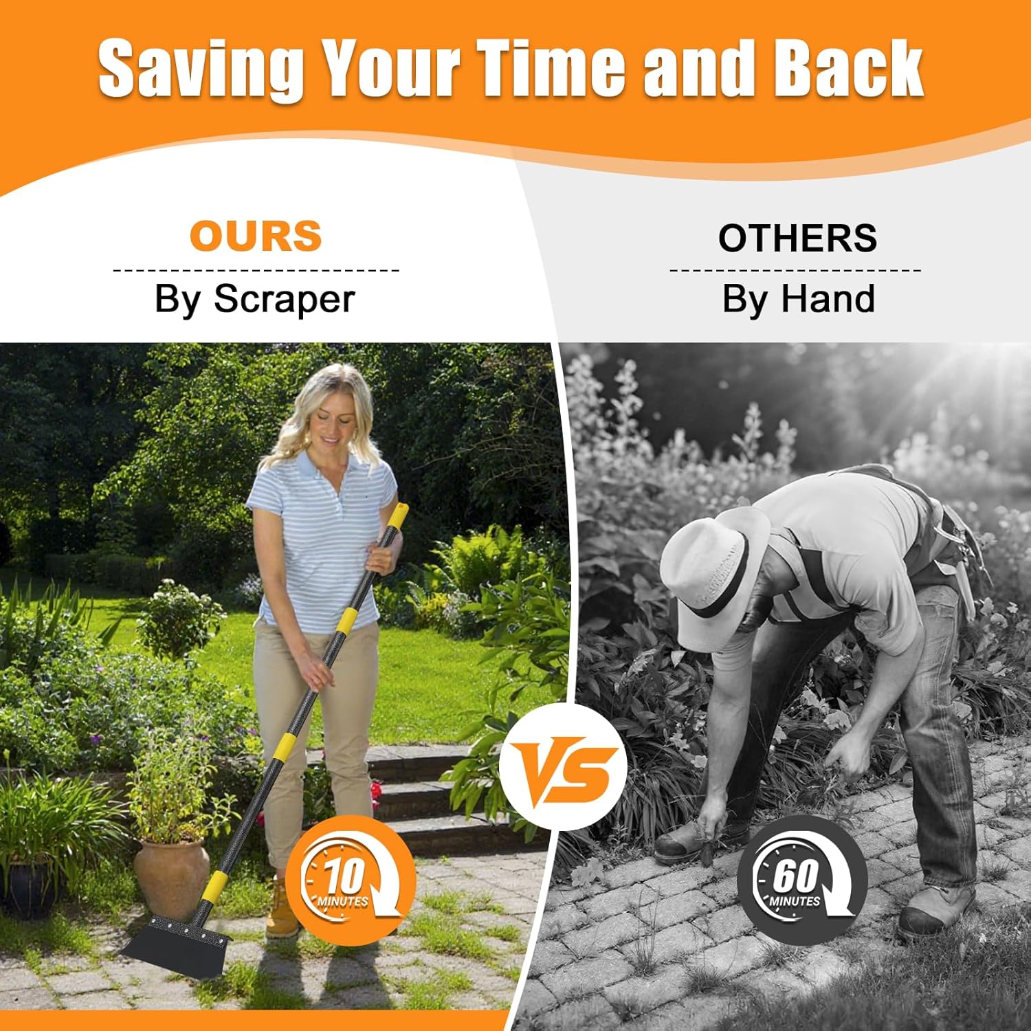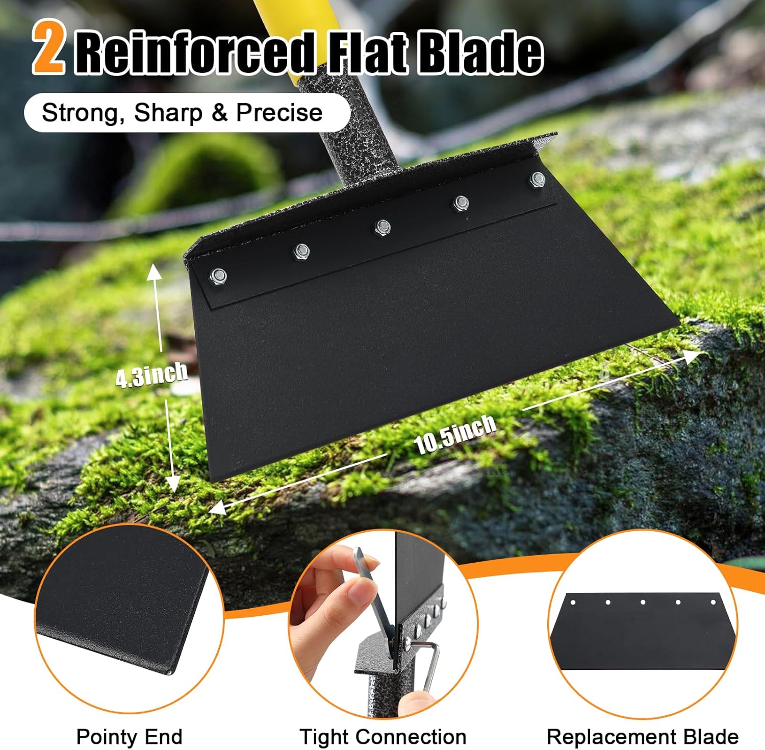 Garden Flat Shovel,74 inch Long Handle Manual Stand Weeding Tool with 2 Spades,Heavy Duty Multifunctional Garden Cleaning Shovel Spade,Floor Scraper for Weeding Edging Snow Ice Removal Tool