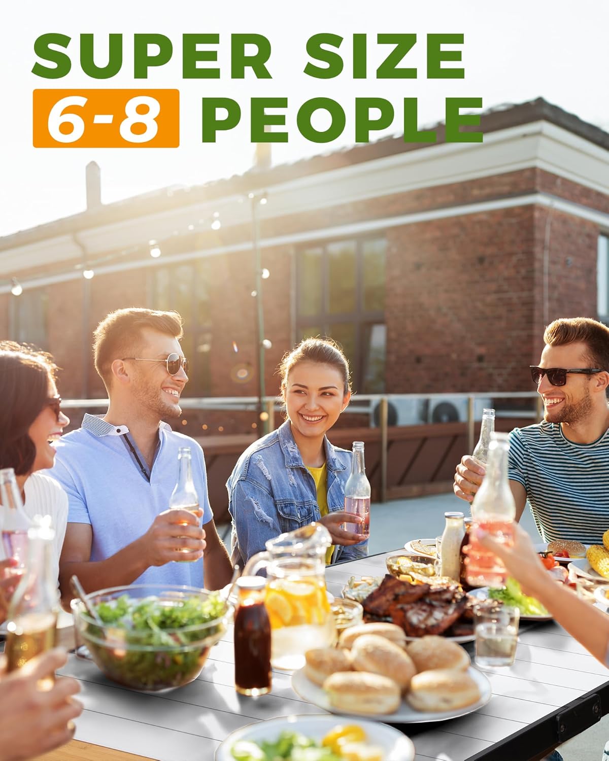 - ăLarge Folding Camping TableăThe folding camping table spacious desktop area is large enough for 4-6 people,27.5 inches height and triangle structure stent design of camping table can give you enough and comfortable space to put your legs.