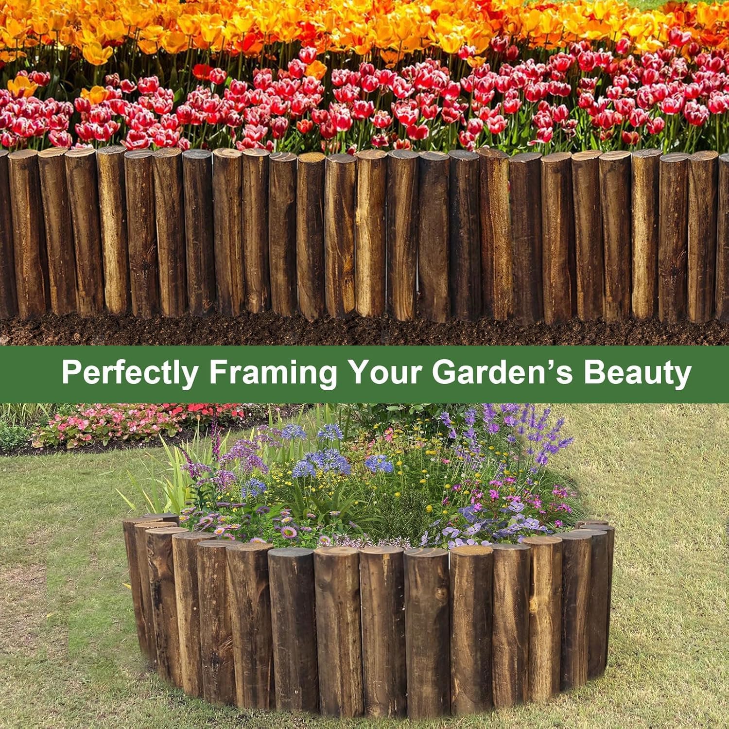 Wood Garden Fence, Natural Wooden Solid Log Edging Border Decorative for Flower Bed Barriers and Landscape Fencing