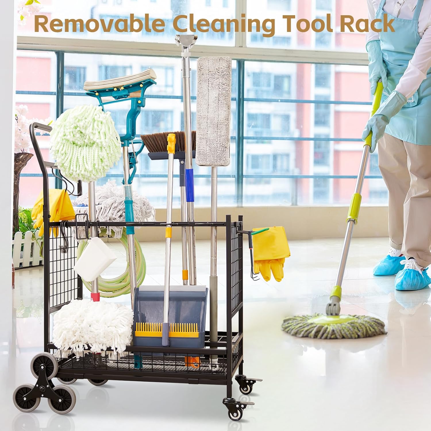 Lauren&Harold Garden Tool Organizer for Garage, Yard Tools Storage Rack with 2 Stair-Climbing Wheels, Gardening Tool Storage Holder for Garage, Yard, Lawn and Outdoor, Garden Tool Rolling Cart