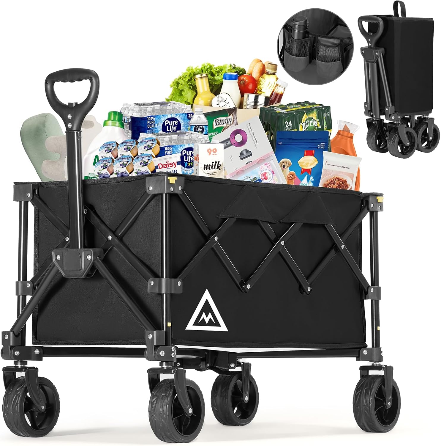 - 【Cup Holders】-Muarch collapsible wagon cart has 2 deep Cup Holders behind the bag. The cup holders feature an elastic band at the opening, enhancing the stability of the cups.