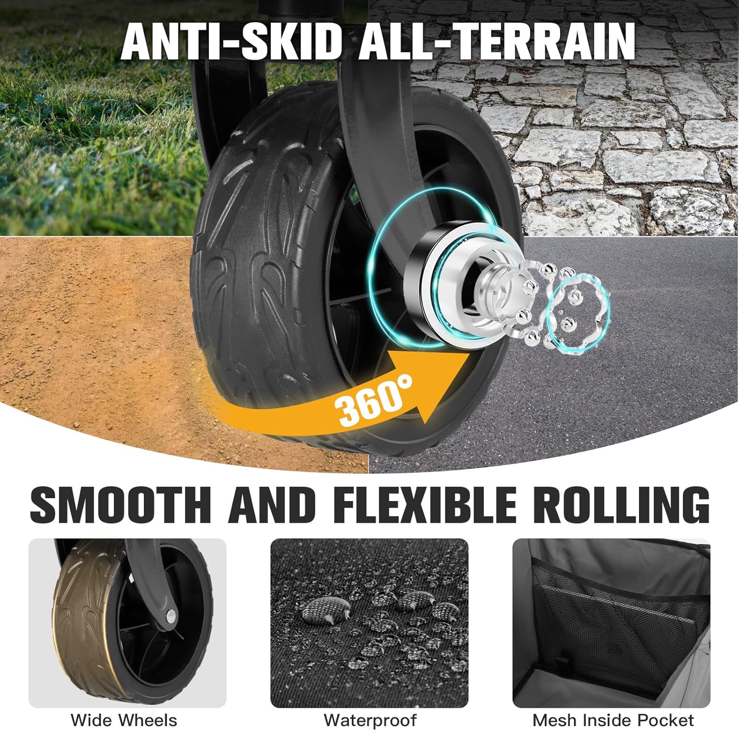 - 【Smooth & Versatile Wheels】-Muarch wagon cart is equipped with wide sturdy swivel wheels. These wheels are wear-resistant and anti-slip, featuring strong load-bearing capacity and excellent shock absorption, making them suitable for a variety of terrains. Additionally, the wheels are equipped with quick-release design, highly convenient.
