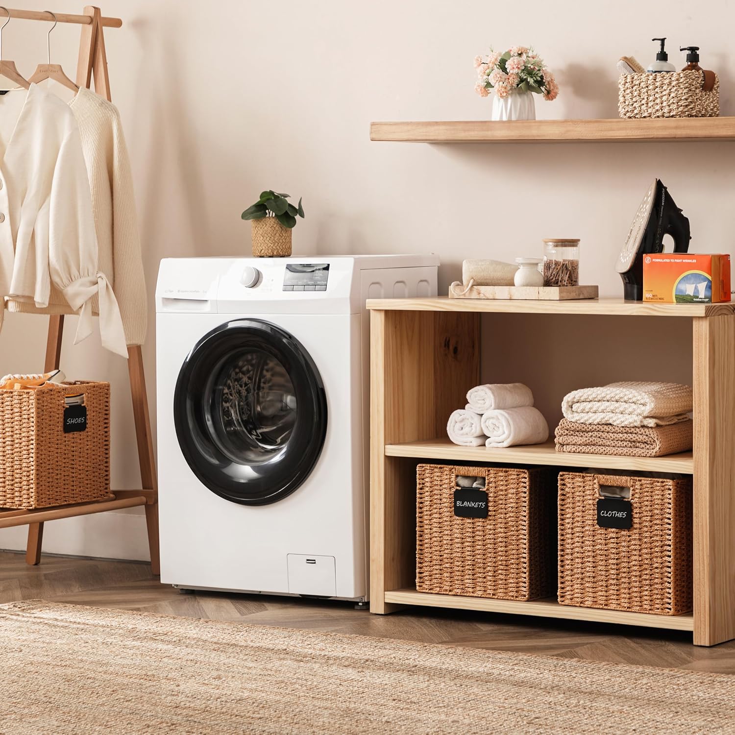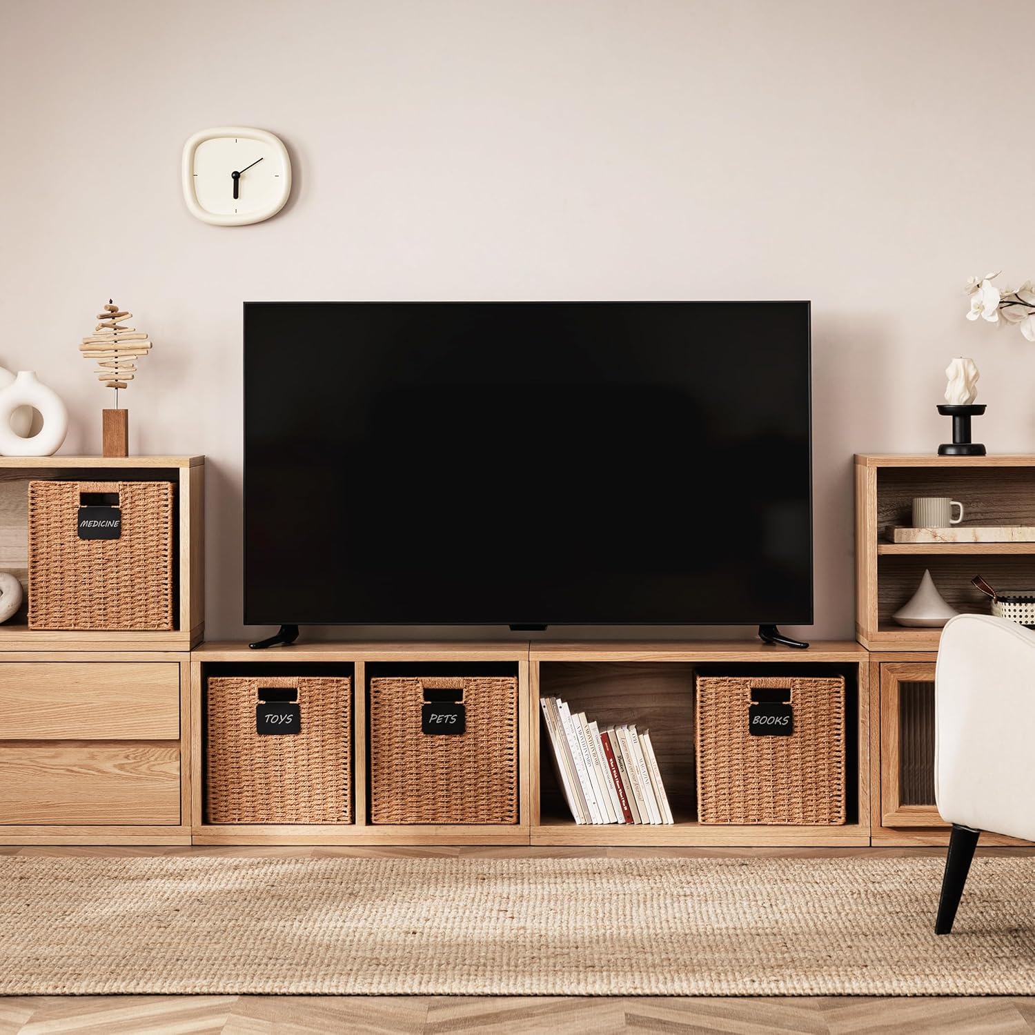 UBBCARE 4 Pack Wicker Basket, 12×12 Storage Cubes with Label, Foldable Cube Storage Bin with Handle, Square Storage Basket for Shelves, Woven Paper Rope Basket for Organizing, Caramel